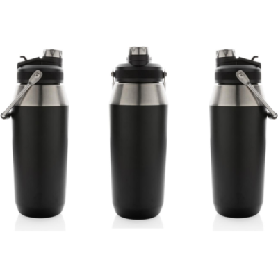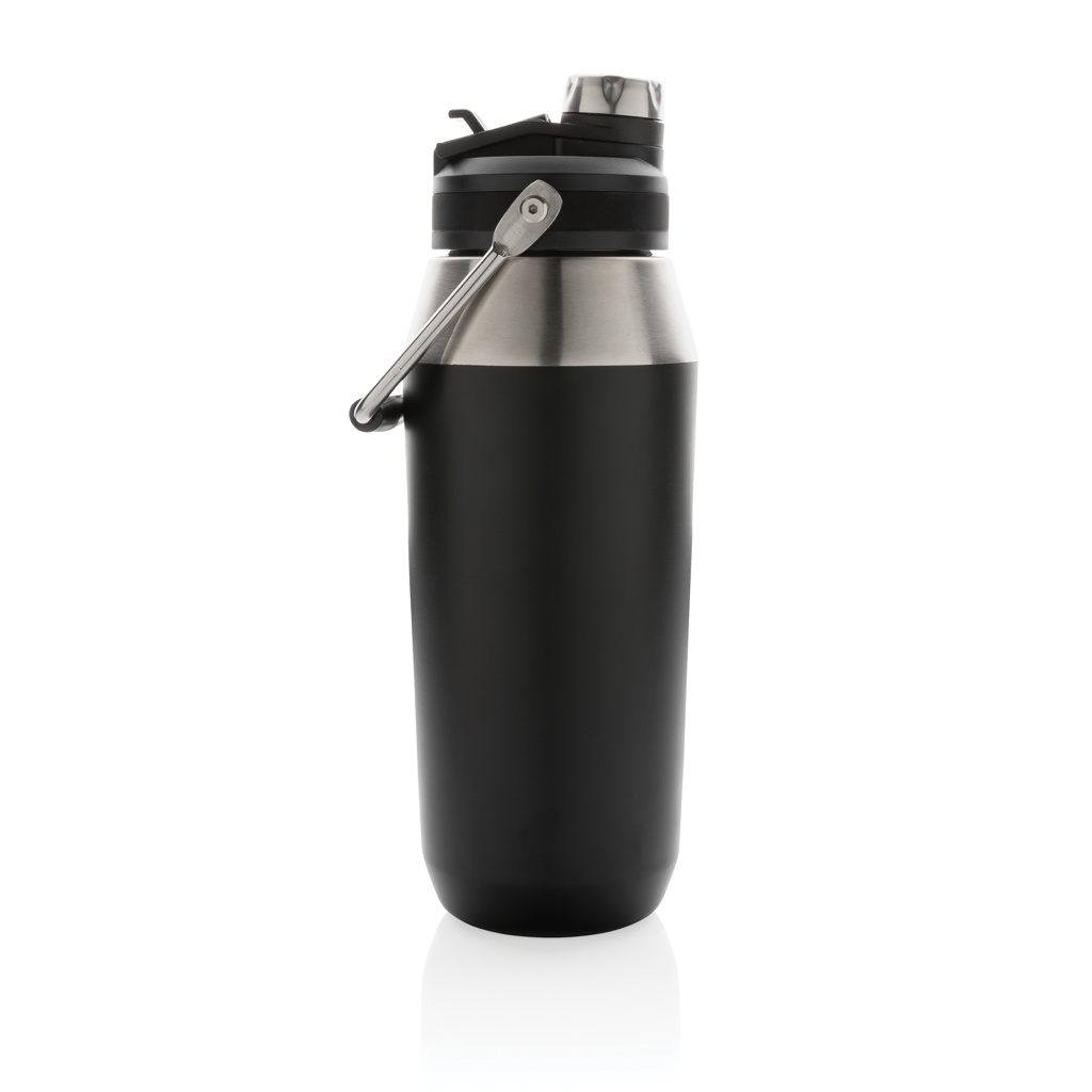1L Vakuum StainlessSteel Flasche mit Dual-Deckel-Funktion, Schwarz
