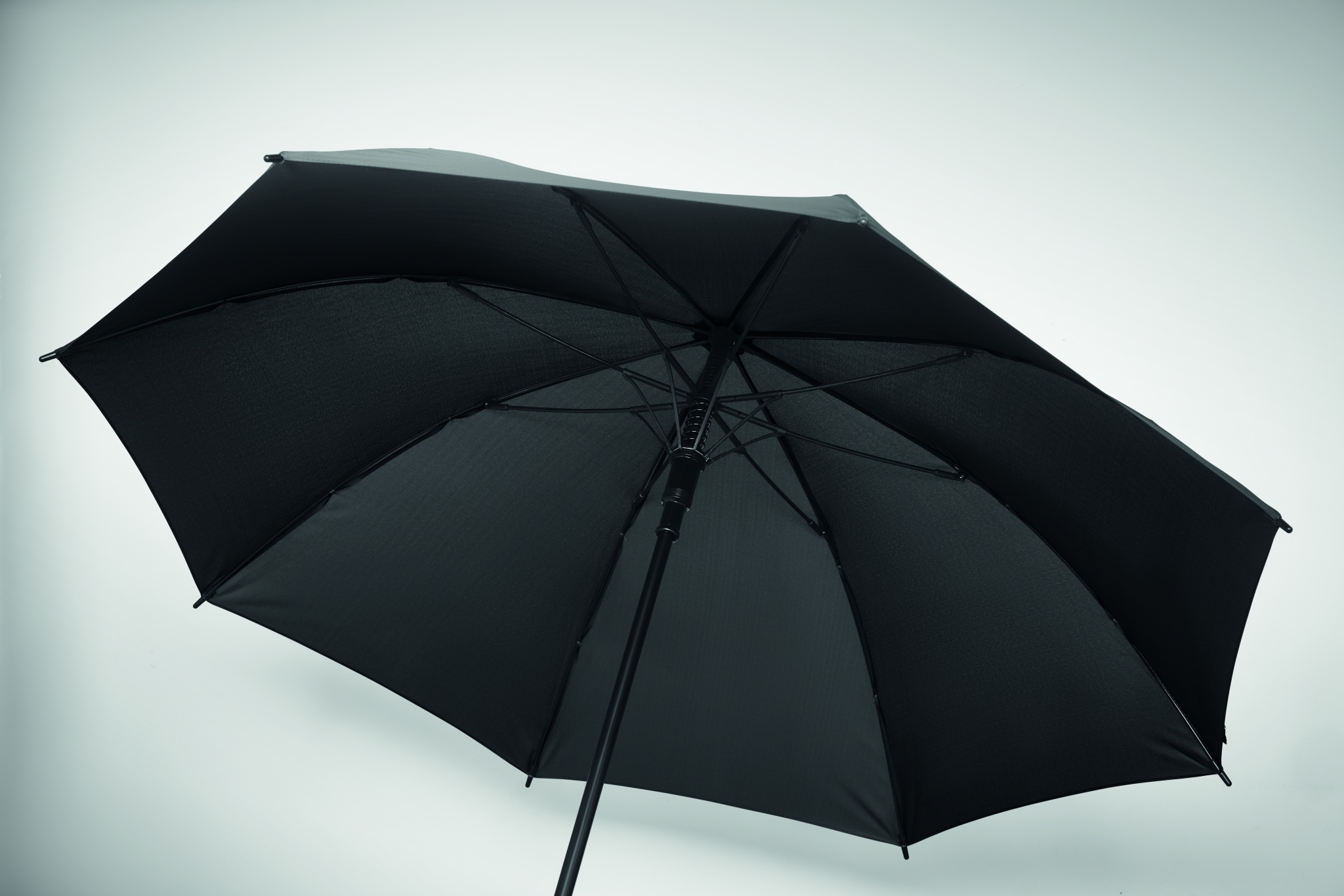 23'''' Regenschirm aus 190T-Pongee. Windbeständig. Stangen aus Fiberglas, schwarz beschichteter Stock und Spitzen aus Kunststoff. Gerader, schwarz gummierter Griff aus ABS. Automatische Öffnung, manuelle Schließung.