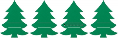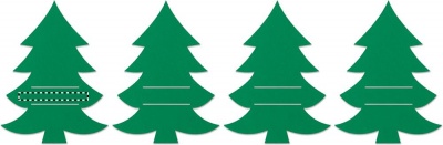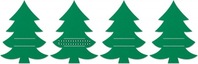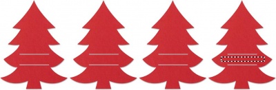 Set mit 4 Besteckhaltern aus RPET-Filz in Form eines Tannenbaums. Lieferung in einer Schachtel aus Kraftpapier.