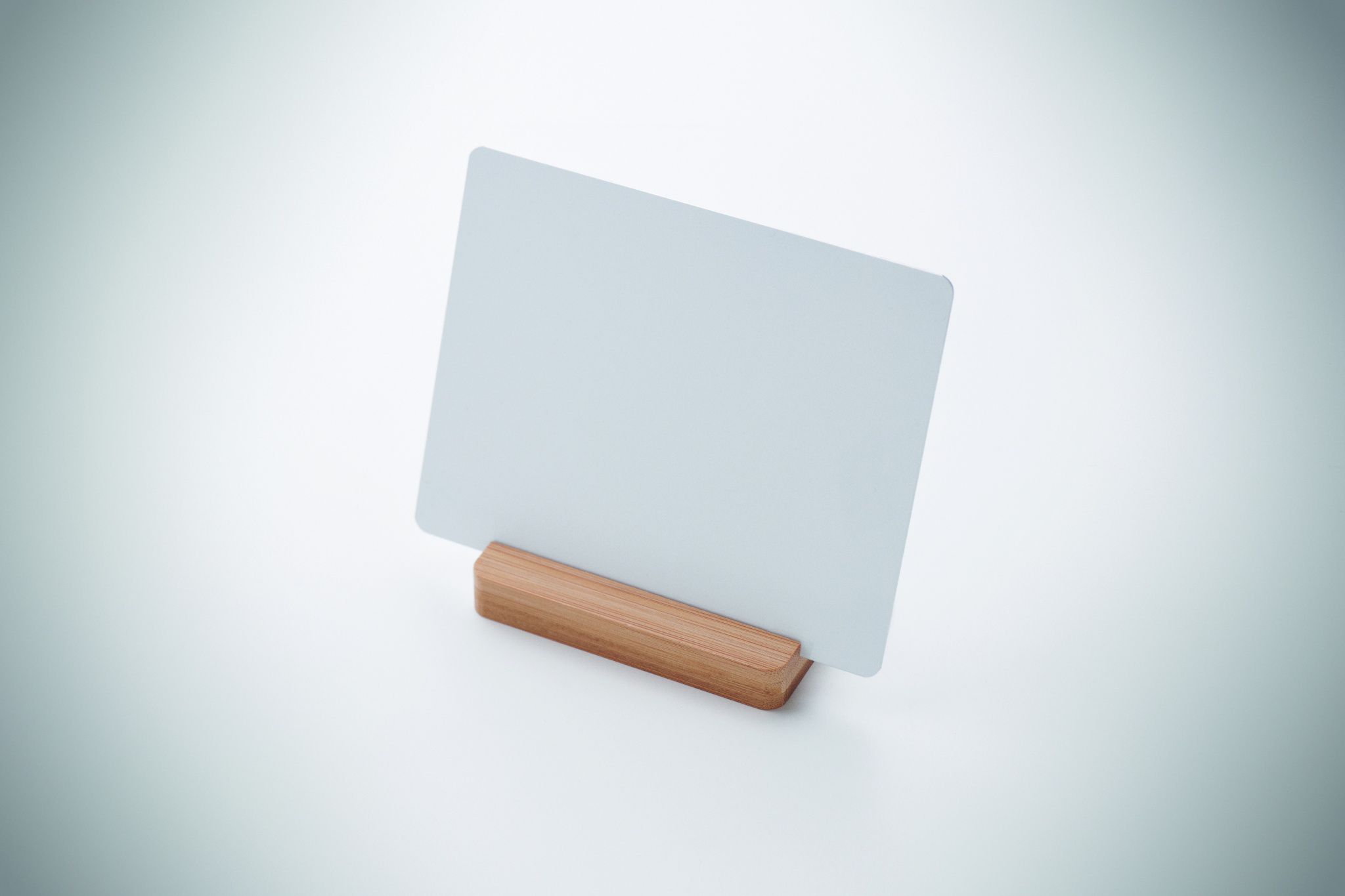 Sublimation-Ehrentafel aus Aluminium mit Sockel aus Bambus. Ideal für individuelles Branding oder als Display.