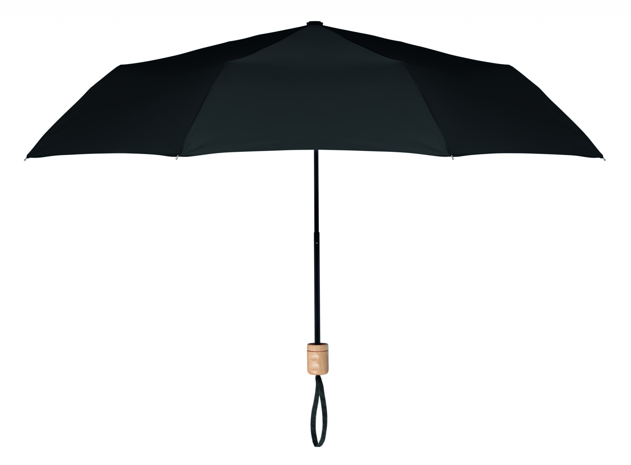 21'' Regenschirm aus 190T RPET Pongee. Stangen und Spitzen aus schwarz überzogenem Metall. Griff aus Holz. 3fach gefaltet. Passende Schirmhülle. Manuelle Öffnung und Schließung.