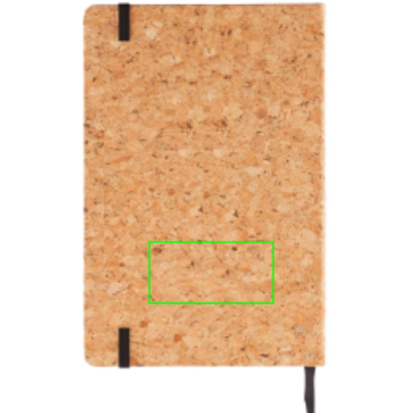 ECO Notizbuch aus natürlichem Kork mit 160 linierten Seiten von 80g/m² Papier. Mit schwarzem Seitentrenner und schwarzem Elastikband. Inkl. Bambus Stift - Stylus und schwarzschreibender Kugelschreiber.