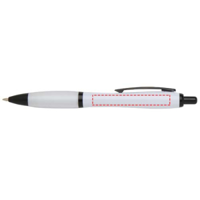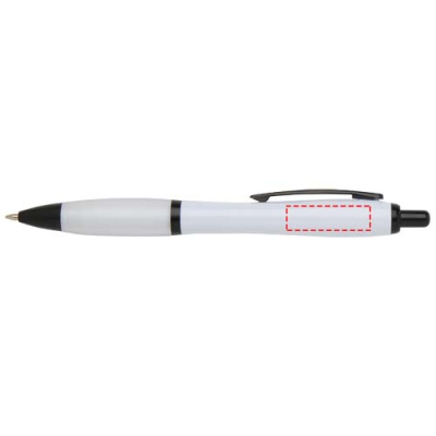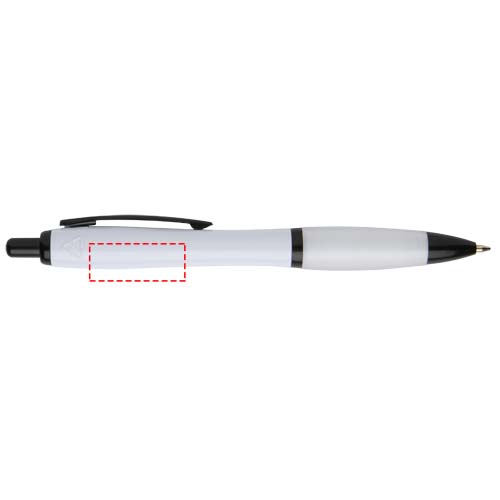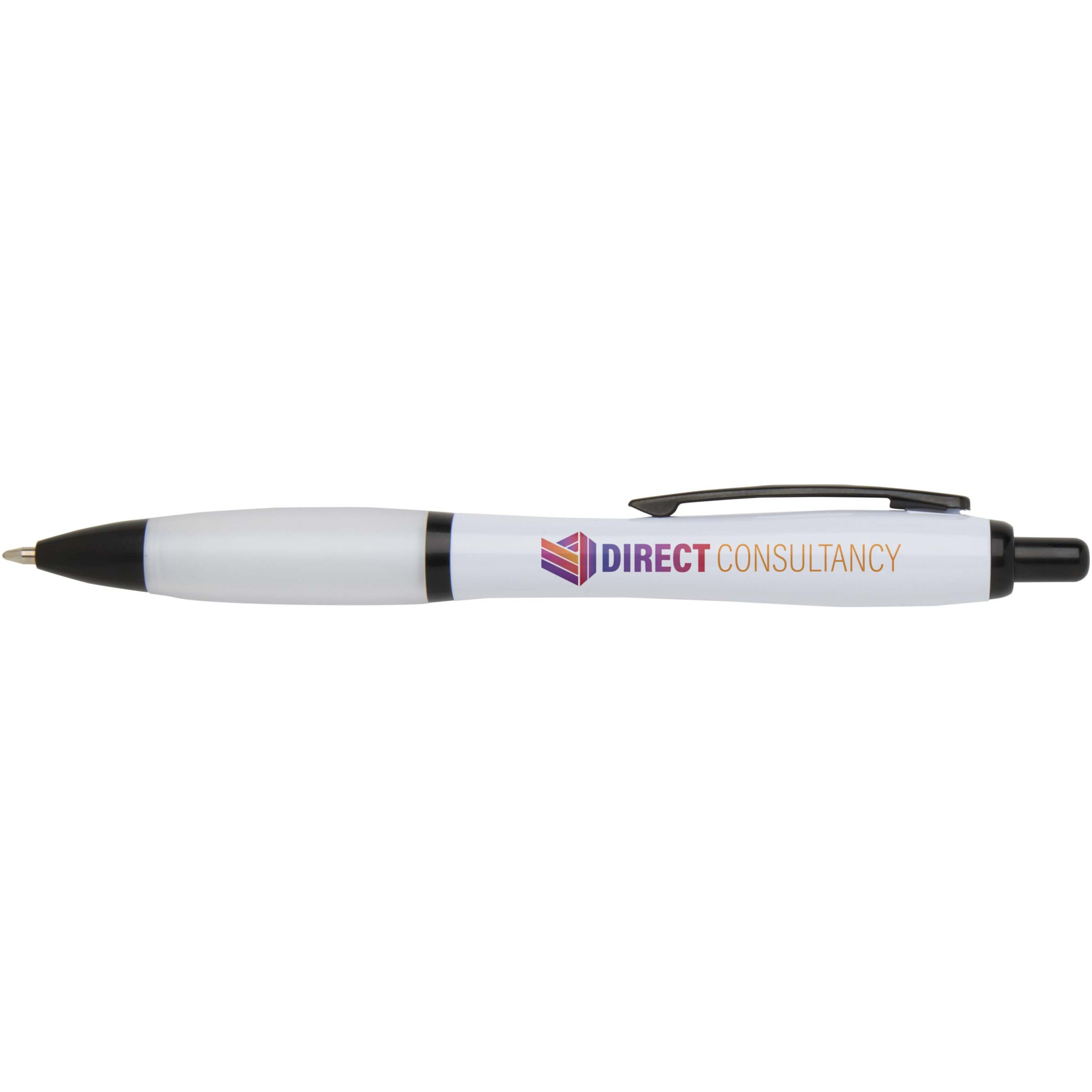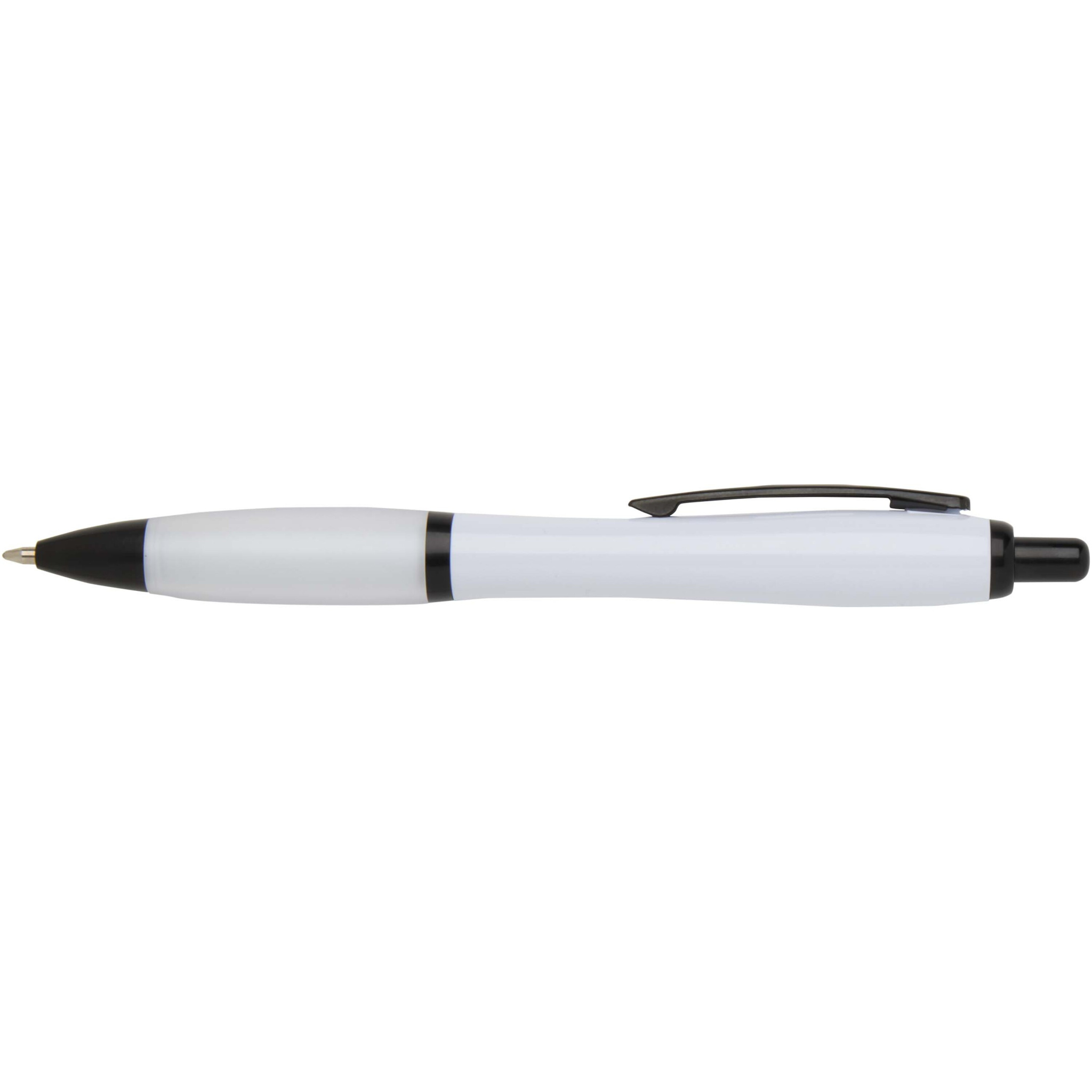 Der Nash Kugelschreiber in der Black Edition hat ein stilvolles, geschwungenes Design mit schwarzen Akzenten und hergestellt aus RCS-zertifiziertem recyceltem Kunststoff zur Reduzierung von Neumaterialien. Dank des schnellen Klickmechanismus ist der Kugelschreiber sofort einsatzbereit. Der weiche Griff verringert die Belastung beim Schreiben. Tintenfarbe: Schwarz. Schreiblänge: 1000 Meter. Spitzengröße: 1,0 mm.
