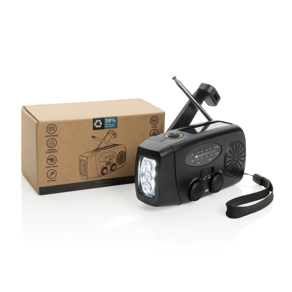 RescueWave Notfallradio aus RCS recyceltem Kunststoff, Schwarz
