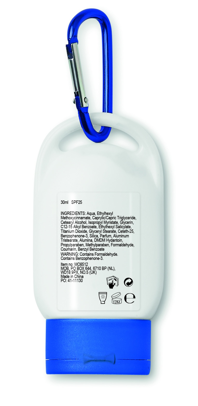 Sunscreen lotion with SPF25 with carabiner. 30ml.