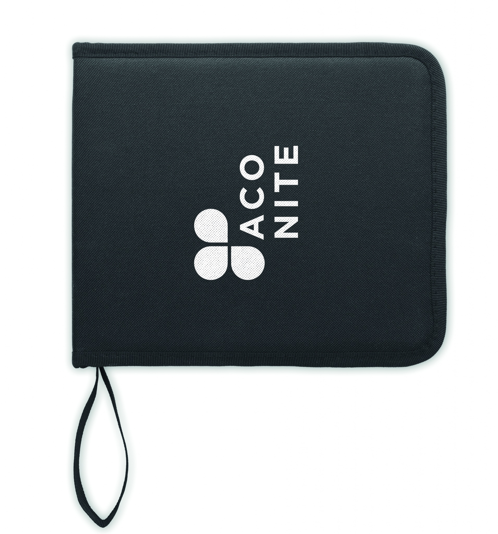 Professional 40-piece art sketching and drawing set. Includes: 14 pencils, 12 colour pens, 1 sand paper, several charcoal pens, 1 woodless graphite pencil, 1 pencil extender, 1 pencil sharpener, 1 eraser, 1 brush and 1 craft knife. Presented in sturdy 450D RPET polyester zipped case.