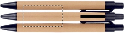 A6 notepad with bamboo hard cover. Twin-wire. 140 plain recycled paper pages (70 sheets). Matching push button ball pen with recycled paper barrel and PLA detailing. Blue ink. Elastic closure strap and pen holder. Bamboo is a natural product, there may be slight variations in colour and size per item, which can affect the final decoration outcome.