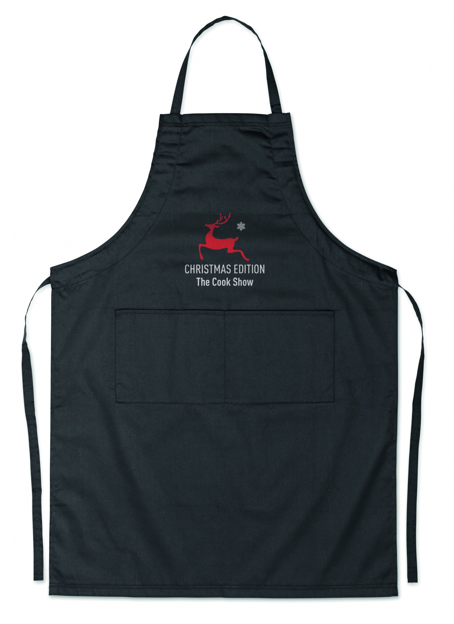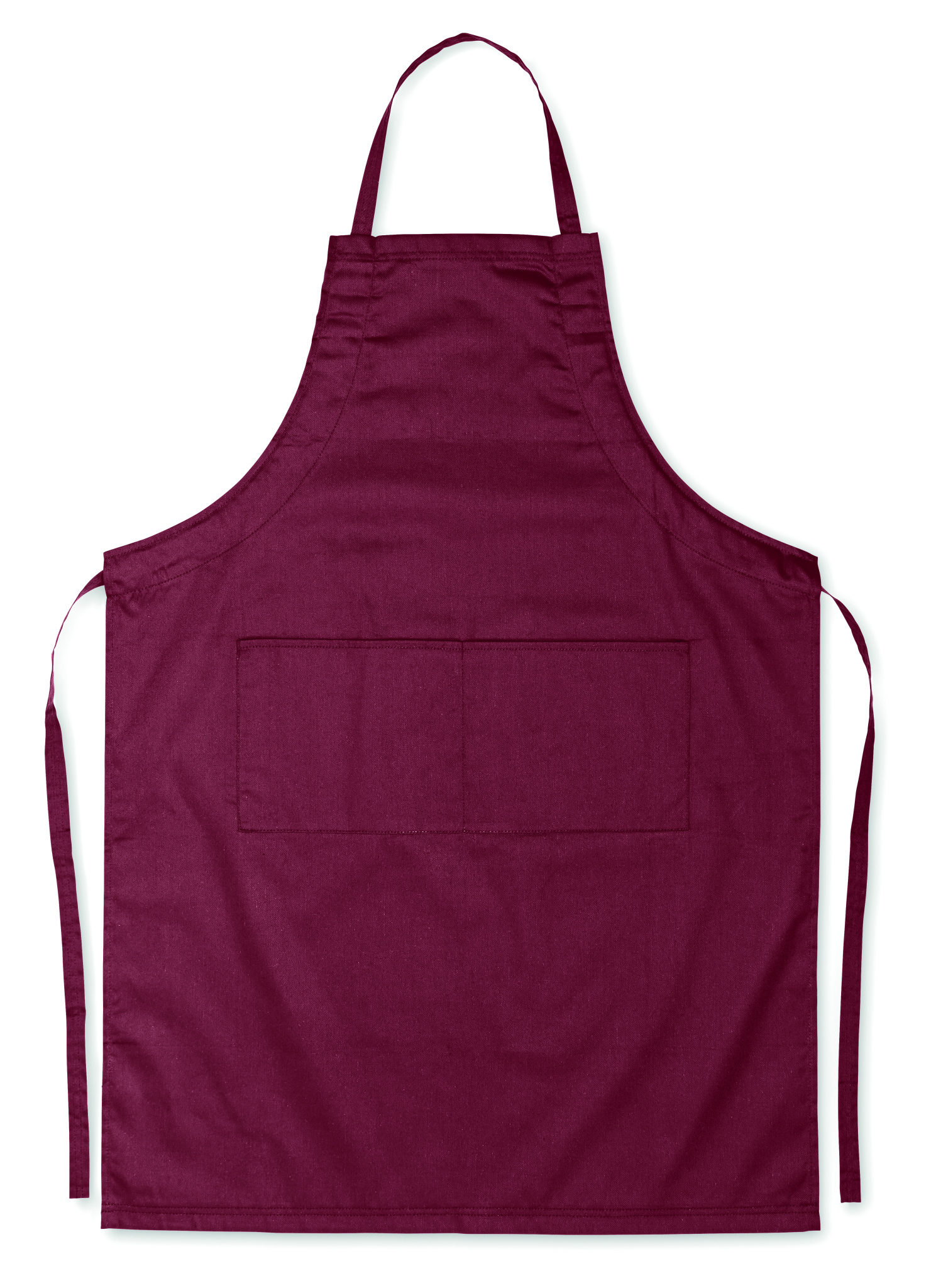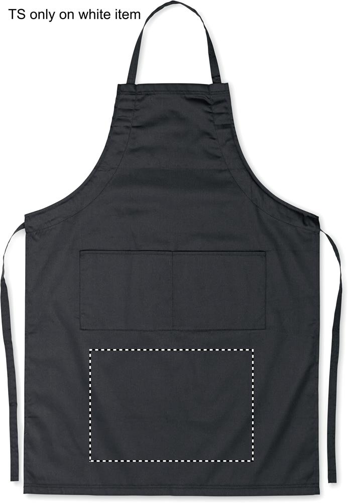 Adjustable kitchen apron with 2 front pockets in 10% cotton/90% polyester, 190gr/m².