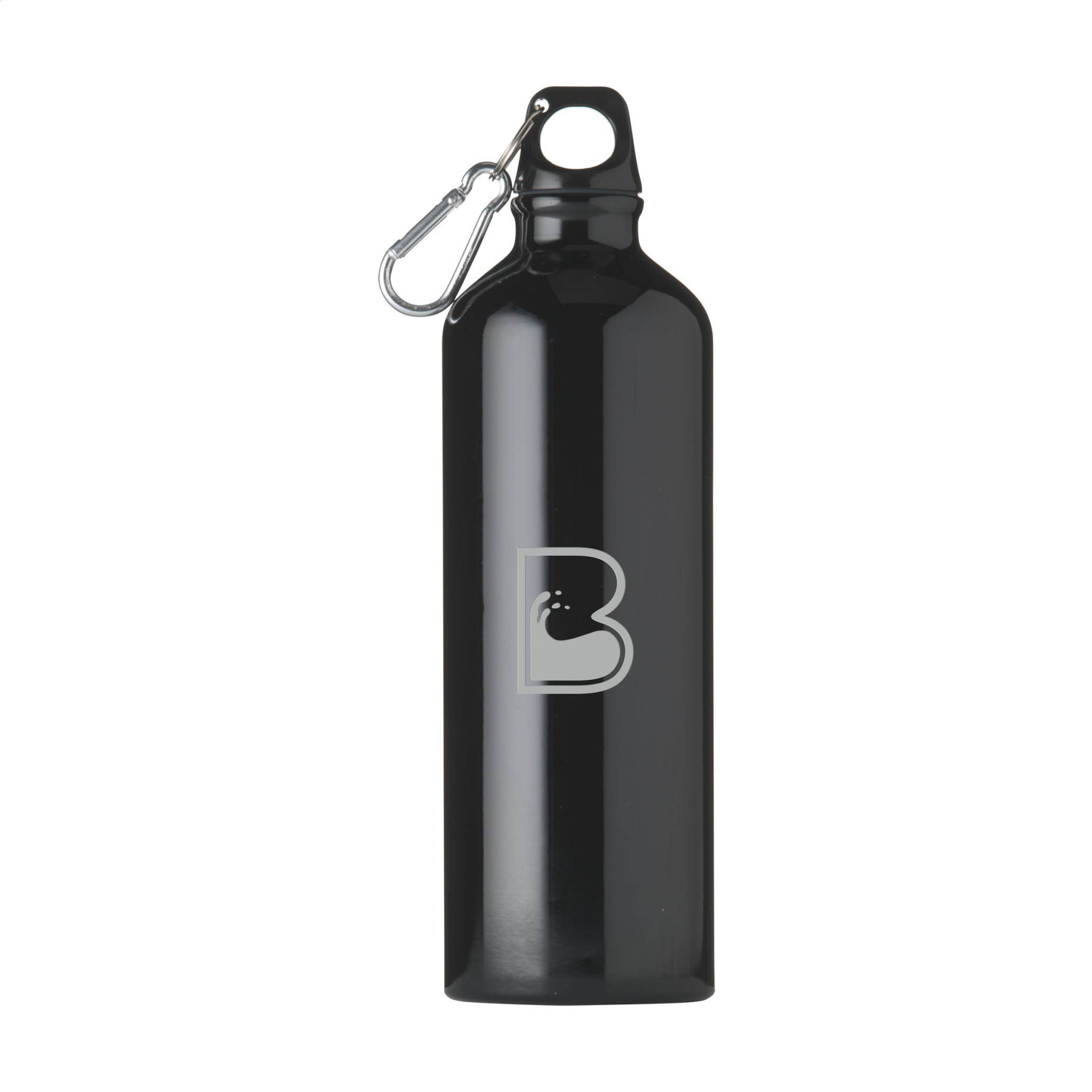 Single-walled, aluminium water bottle with high gloss finish, plastic screw cap with keyring and metal carabiner. The carabiner is not to be used for climbing. Leak proof. Capacity 750 ml.