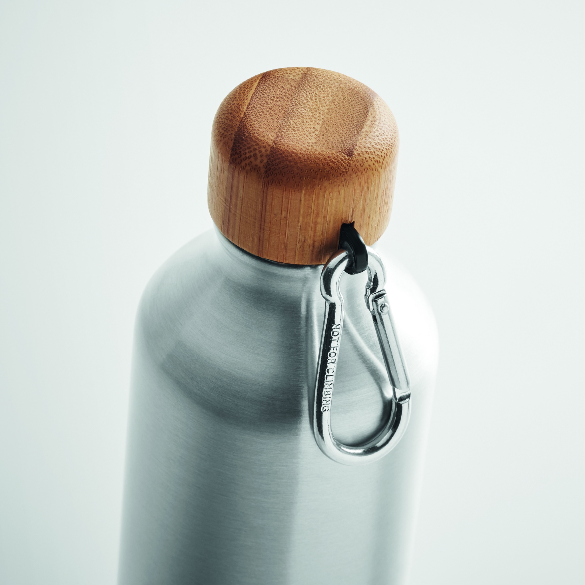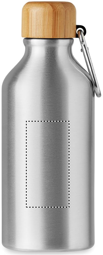 Single wall Aluminium bottle with bamboo lid and carabiner. Capacity: 400 ml. The carabiner is not for climbing (non professional use). Bamboo is a natural product, there may be slight variations in colour and size per item, which can affect the final decoration outcome.