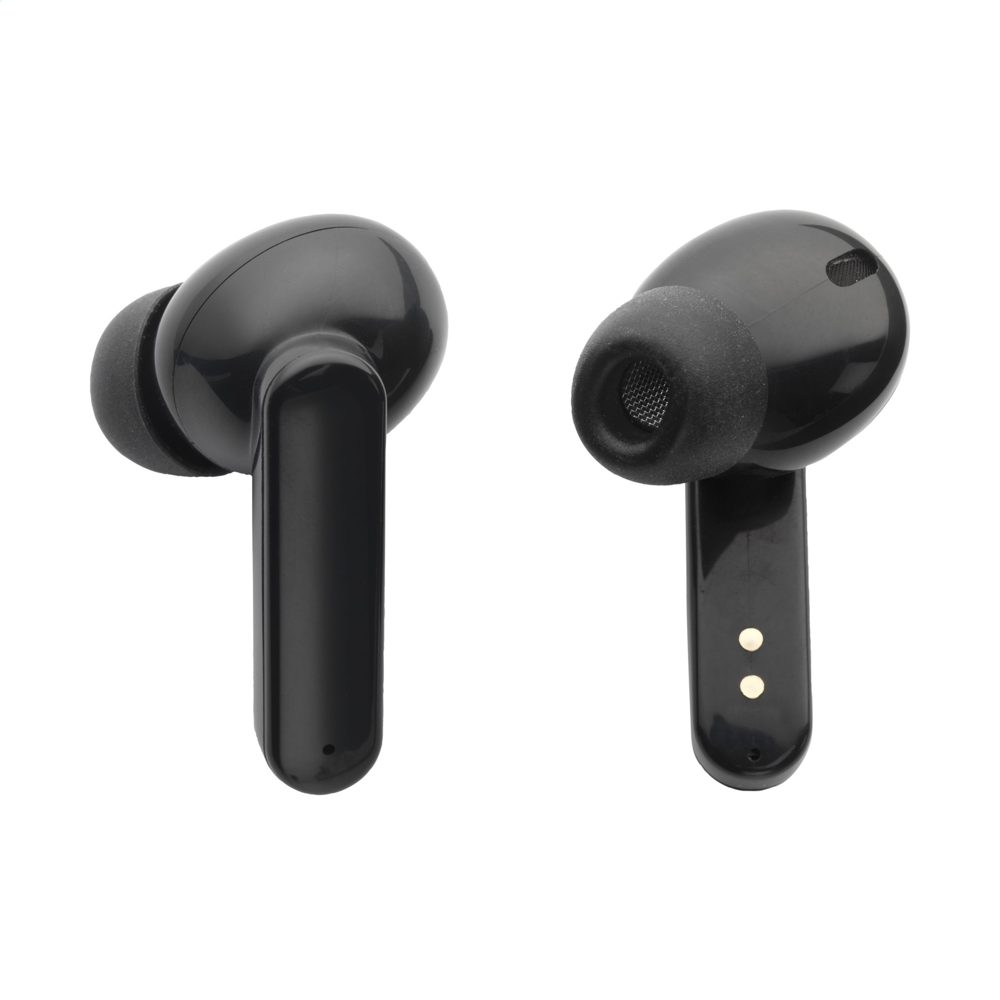 True wireless earbuds in charging case. The earbuds use BT 5.0 for a smooth connection. The 30mAh battery allows for play time up to 4 hours and can be recharged in 2 hours in the 300mAh charging case. With outstanding sound reproduction and adjustable volume. The charging case has an LED display with a battery icon. With autopairing for automatic linking and touch control. Easy hands-free telephone calls and enjoying music without restriction of movement. Range up to 10 meters. Including silicon earbuds in 3 sizes, micro-USB charging cable and user manual. Each item is individually boxed.