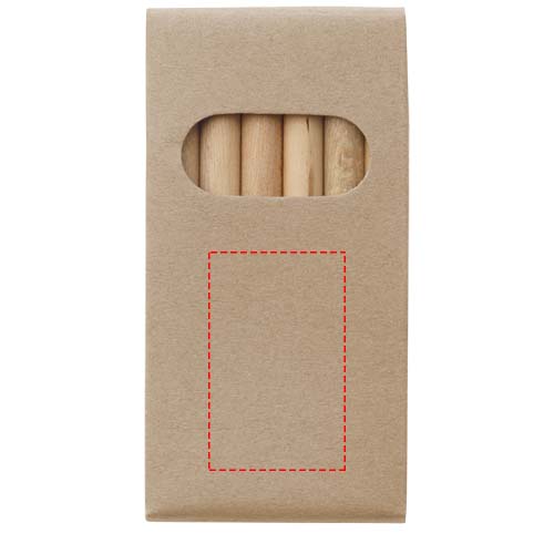 Colouring set with 6 pencils made of poplar wood. By opting for a colouring set made from wood coming from responsibly managed forests, you can support more sustainable and ethical practices in the production of art supplies. Delivered with a manual in a kraft paper box. Pencil size: 87 x 7 mm.