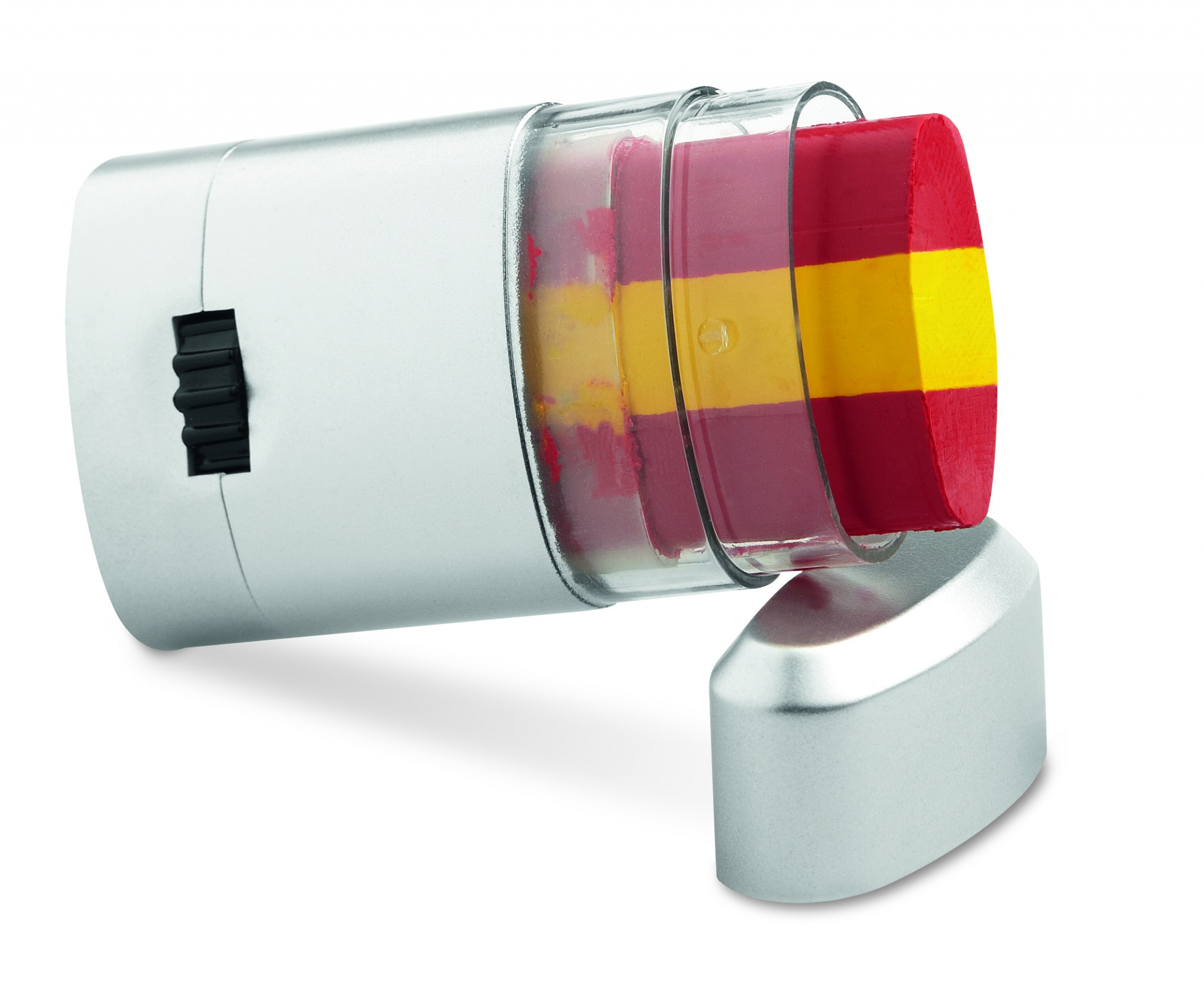 Body paint flag stick presented in silver case and transparent in the middle.