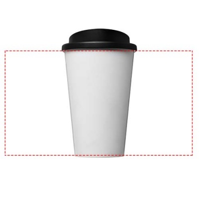 Double-wall insulated tumbler with a twist-on lid and full colour wraparound design moulded to the product. Made from 95% recycled plastic and has a black inner layer. The mug is fully recyclable, and dishwasher and microwave safe. 350 ml volume capacity and BPA free. Packed in a home compostable bag. Made in the UK.