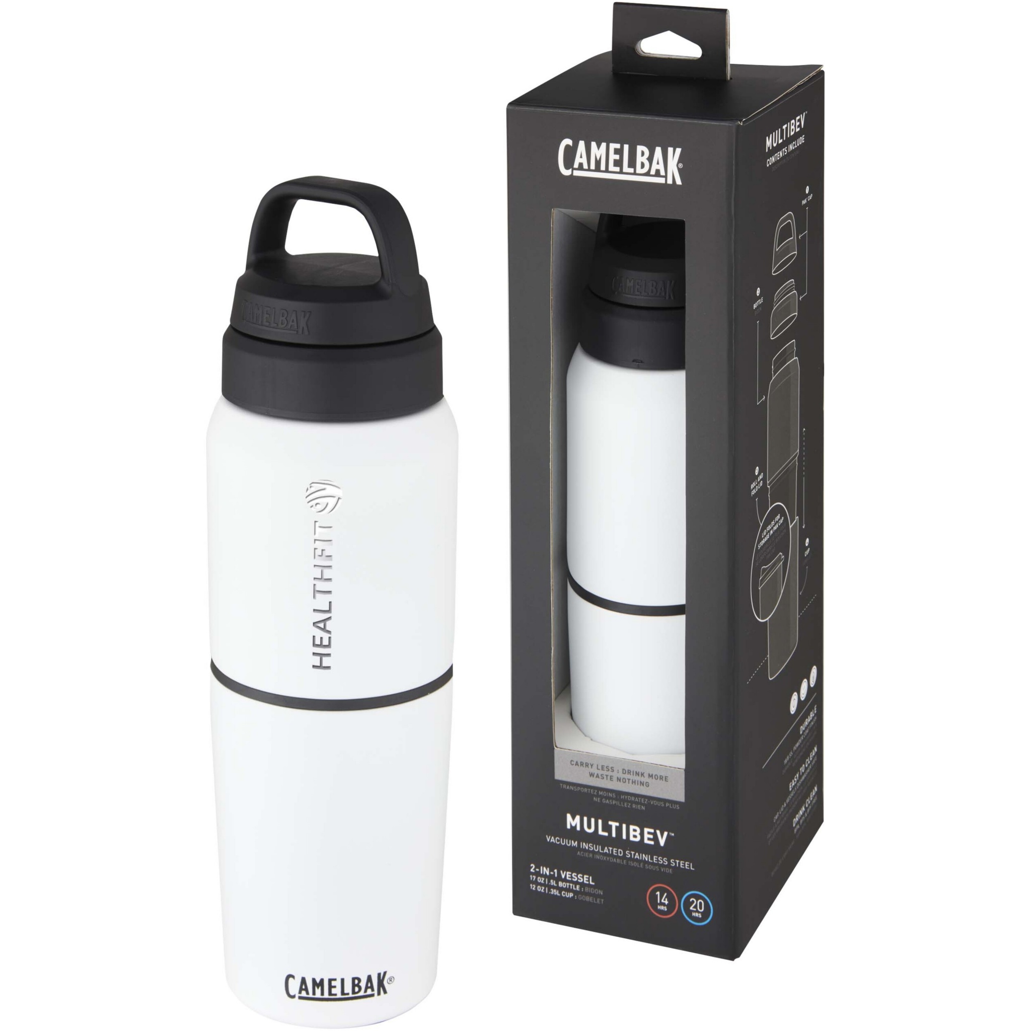 The ultimate beverage multi-tasker for on-the-go sustainability and versatility. The MultiBev is a 2-in-1 vessel that serves as both a sports bottle and detachable travel cup. Use for coffee in the morning, water throughout the day, and camp-out beers with friends at night. Drink. Share. Rinse and repeat. The double-walled vacuum insulated stainless steel construction keeps beverages hot or cold for hours. A powder coat finish and non-slip silicone base create a highly durable exterior. The leak-proof Pak™ cap tucks the roll and fold lid neatly out of sight until paired with the removable cup, or stores small essentials like a tea bag or snacks. Easy-to-clean. BPA-, BPS-, and BPF-free.