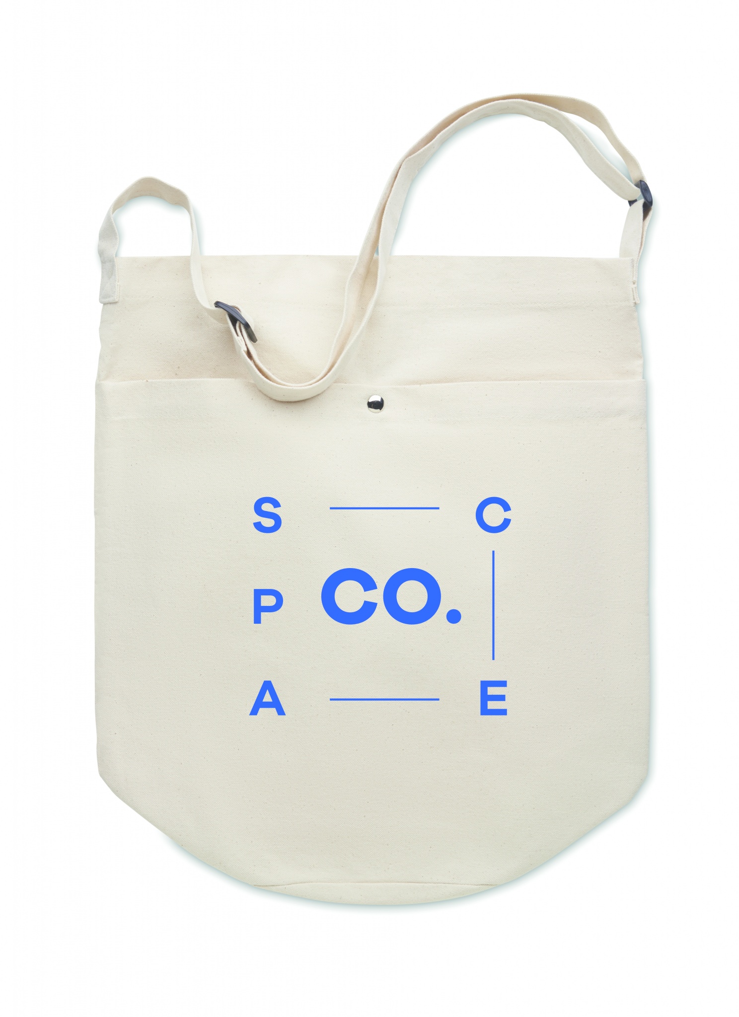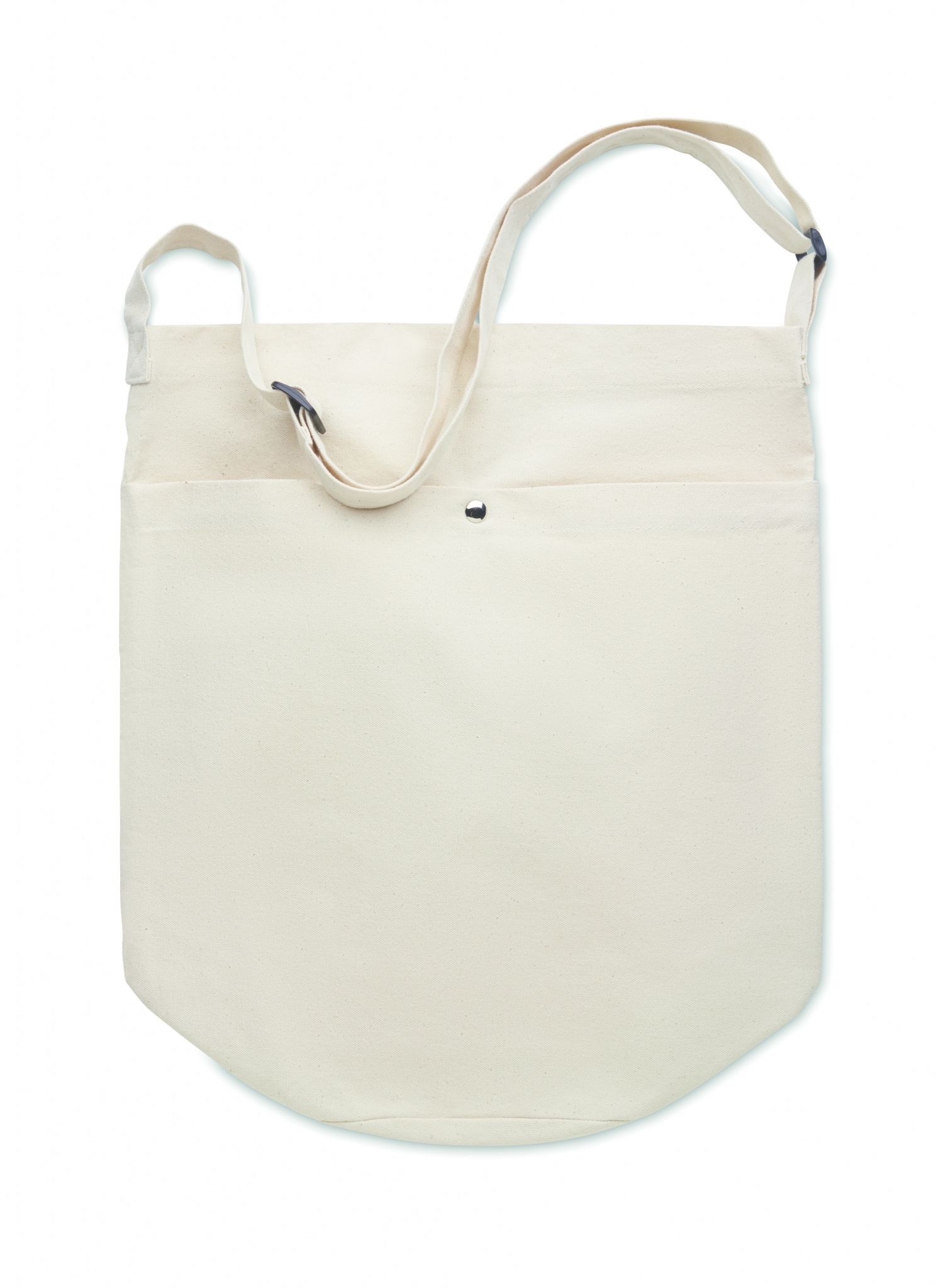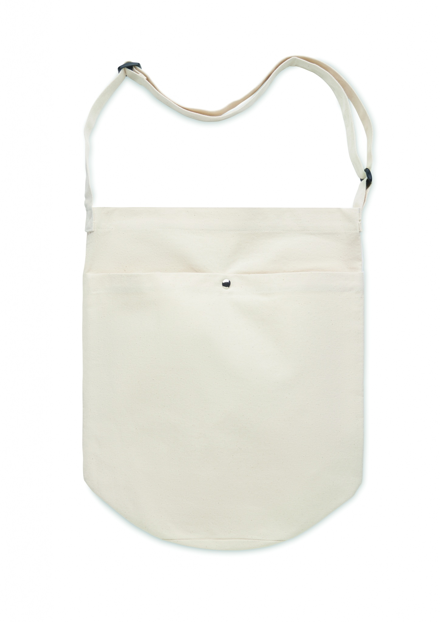 Canvas bag with long adjustable cross shoulder strap and large front pocket with snap closure. Includes inner pocket. 270 gr/m².