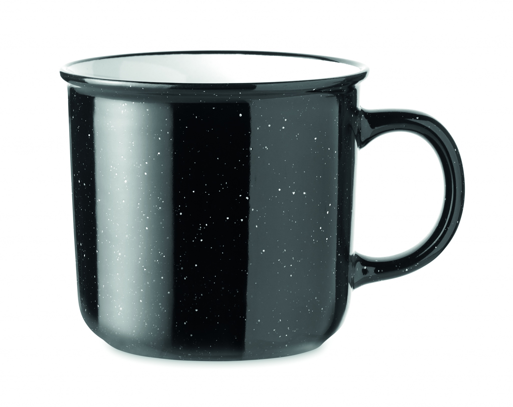 Large ceramic vintage style mug. Due to the spotted pattern, spots will be visible in the printed logo. Capacity: 400 ml.