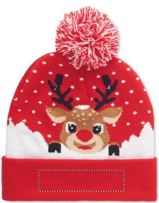 Christmas knitted beanie LED, Red