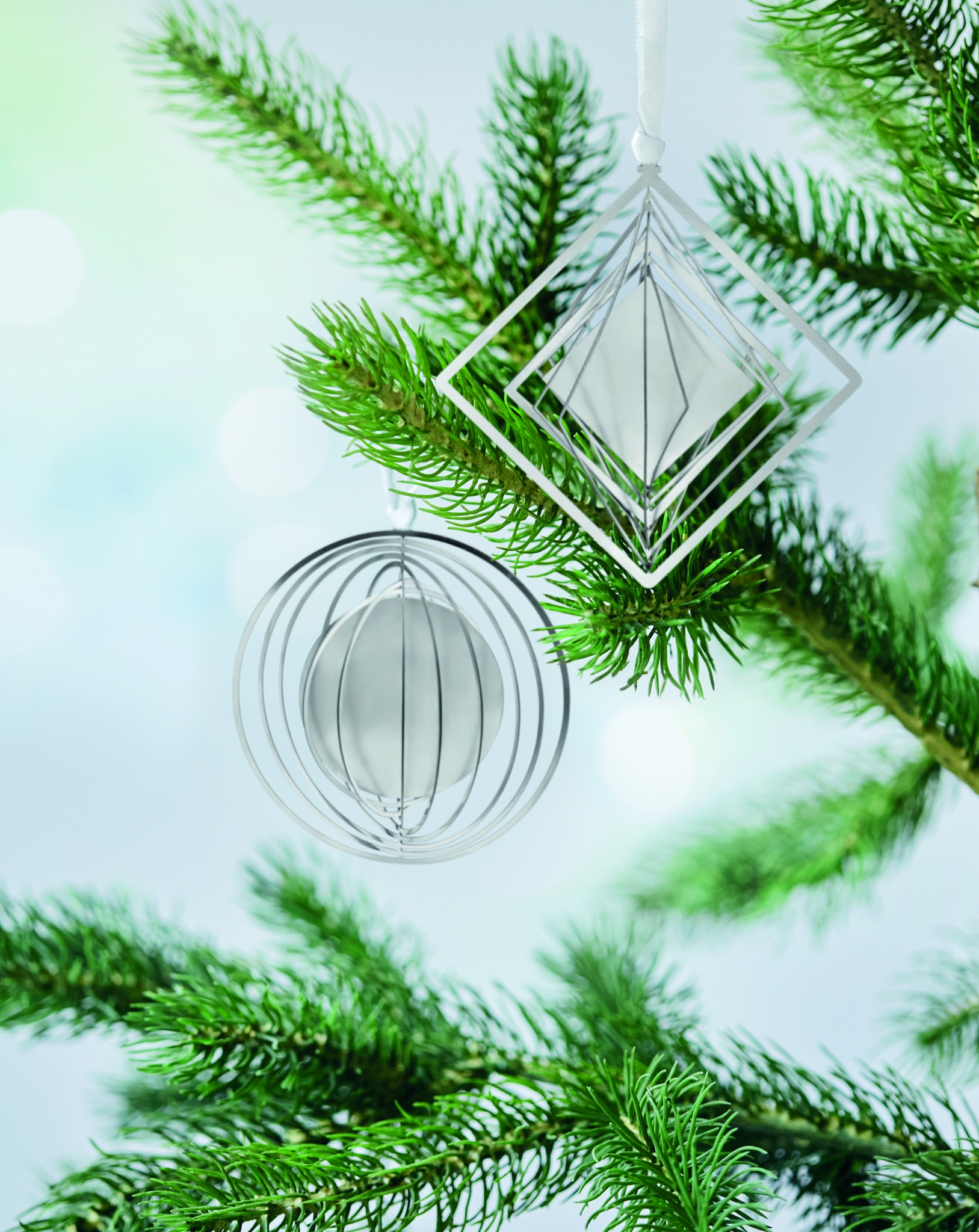 Circular shaped decorative ornament in stainless steel with ribbon in gift envelope. Easily folds flat for mailing and storage.