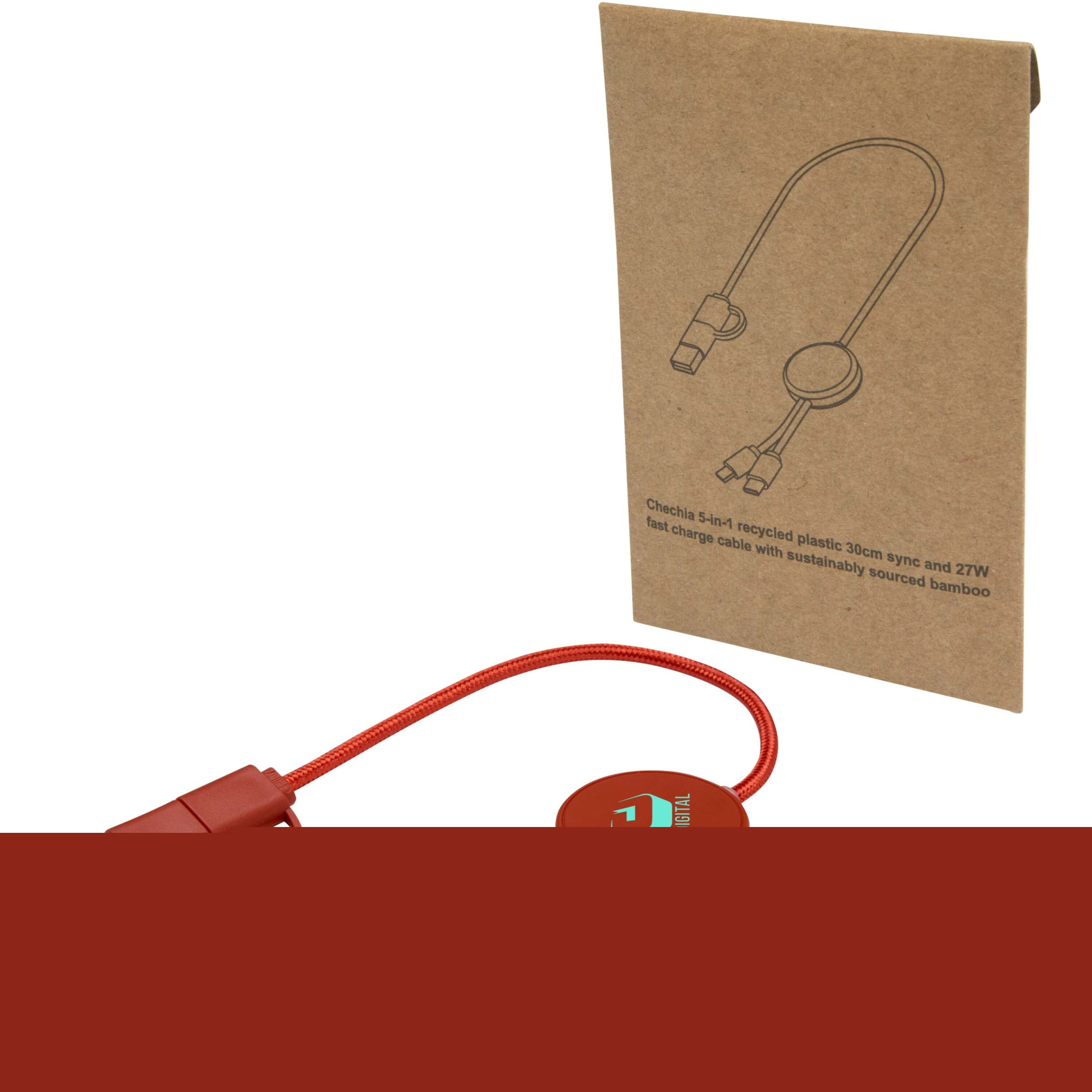 Logo trade business gift photo of: Citala 5-in-1 recycled plastic 30 cm data sync and 27W fast charge cable