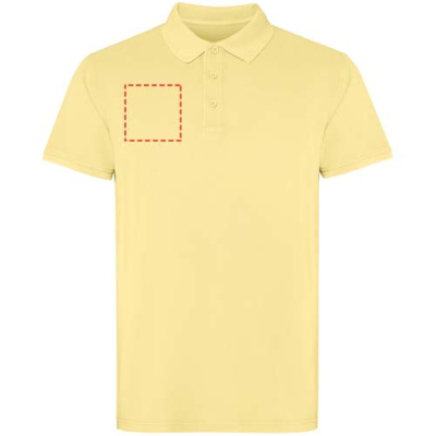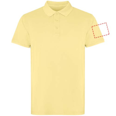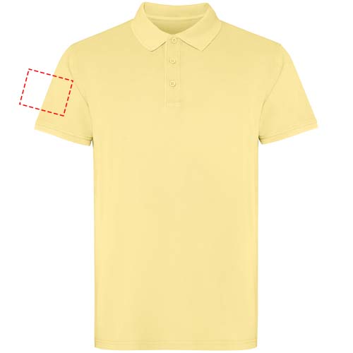 Short sleeve unisex polo. Acid-wash finish. Ribbed 1x1 collar and cuffs, with side openings. Tone-on-tone cover stitch. Placket with three buttons.