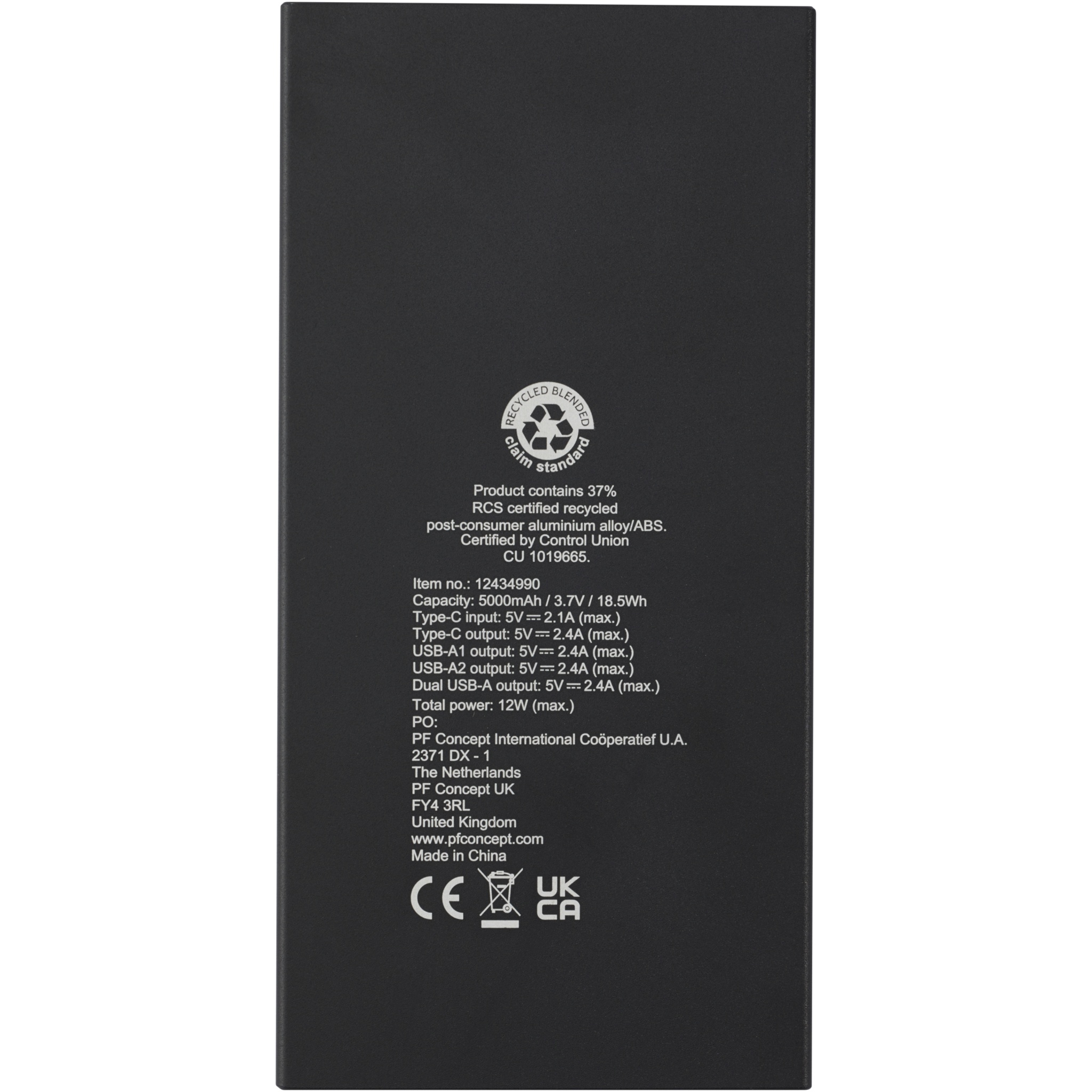 Connect 5000 mAh recycled aluminium power bank, Solid black