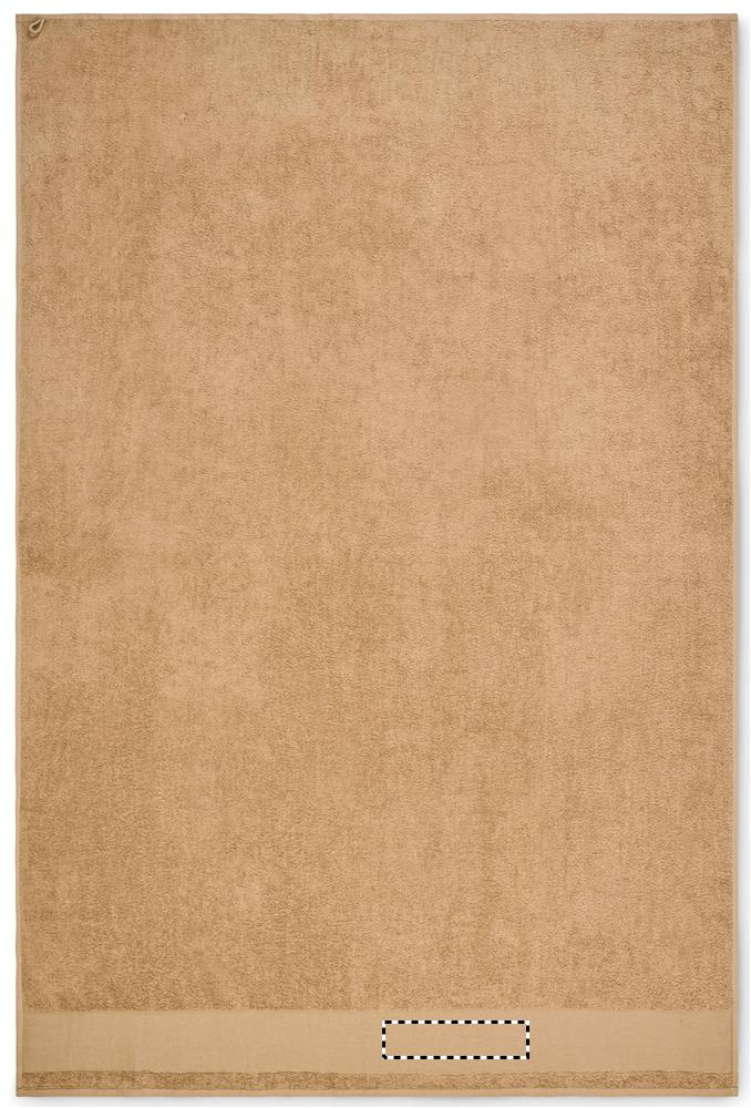 Bath towel made of 100% cotton, 380 gr/m² fabric with cotton hanger loop. Soft and absorbent design. Size 100 cm x 150 cm.