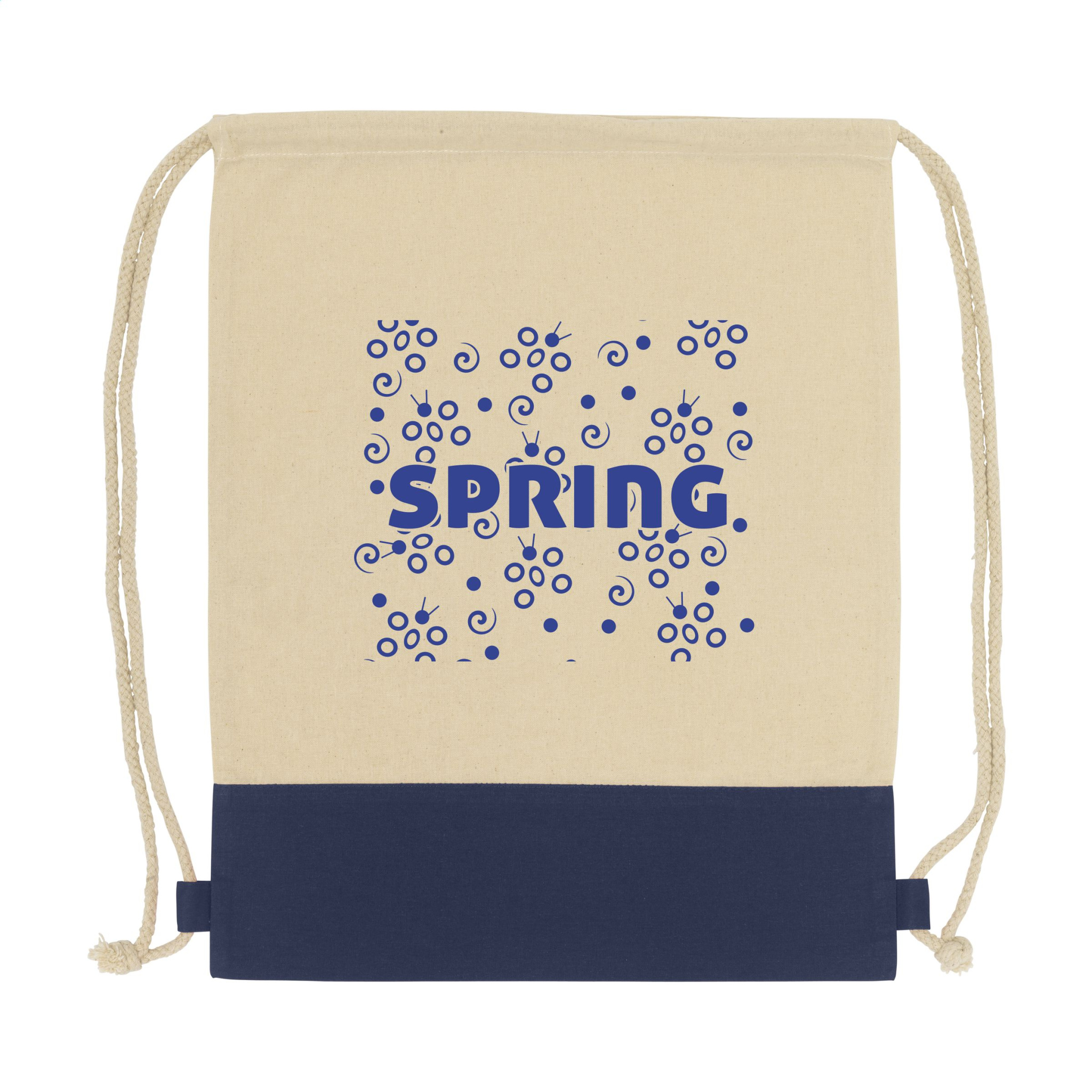 Backpack with drawstrings made from 100% cotton (125 g/m²) and a coloured inlay. Capacity approx. 8 liters.