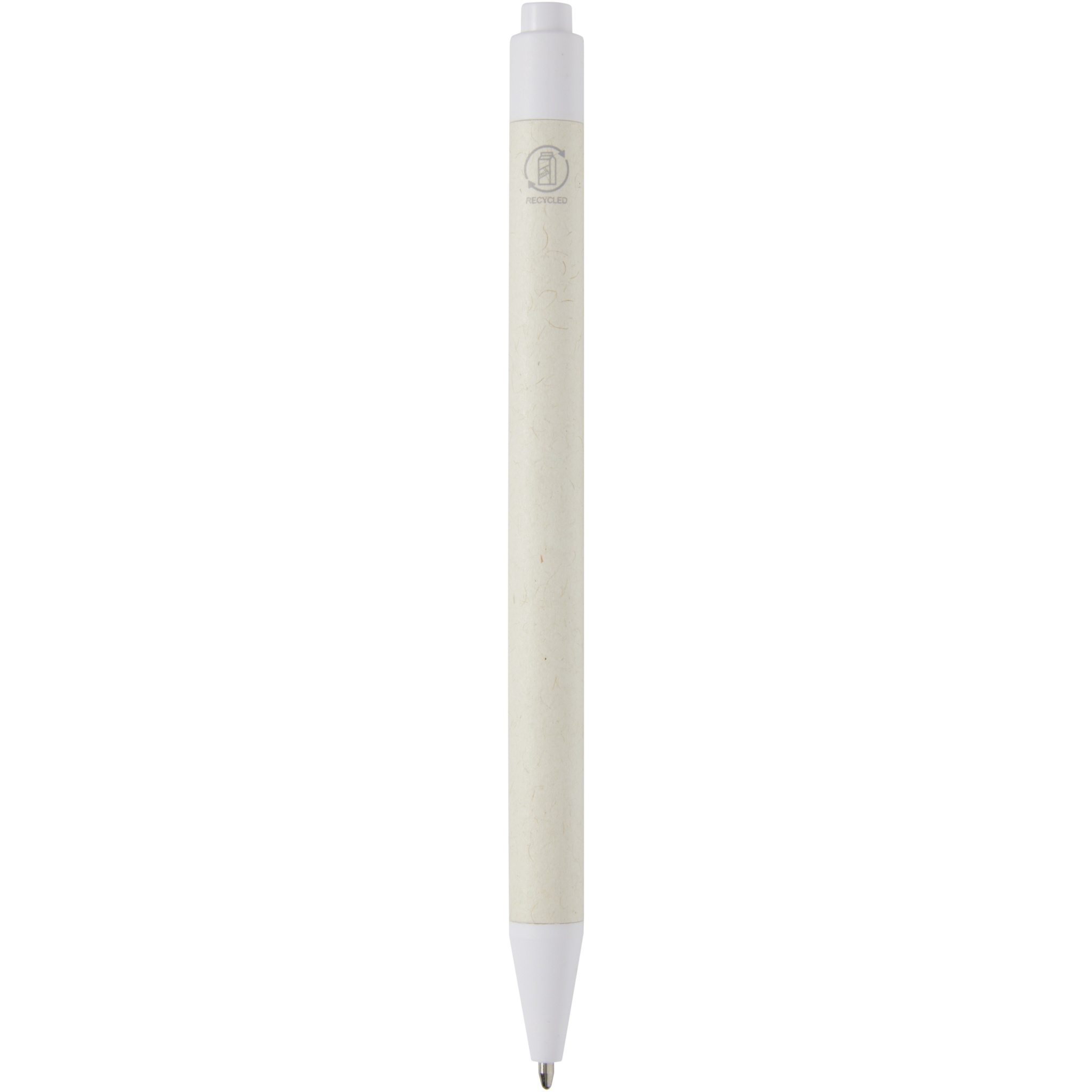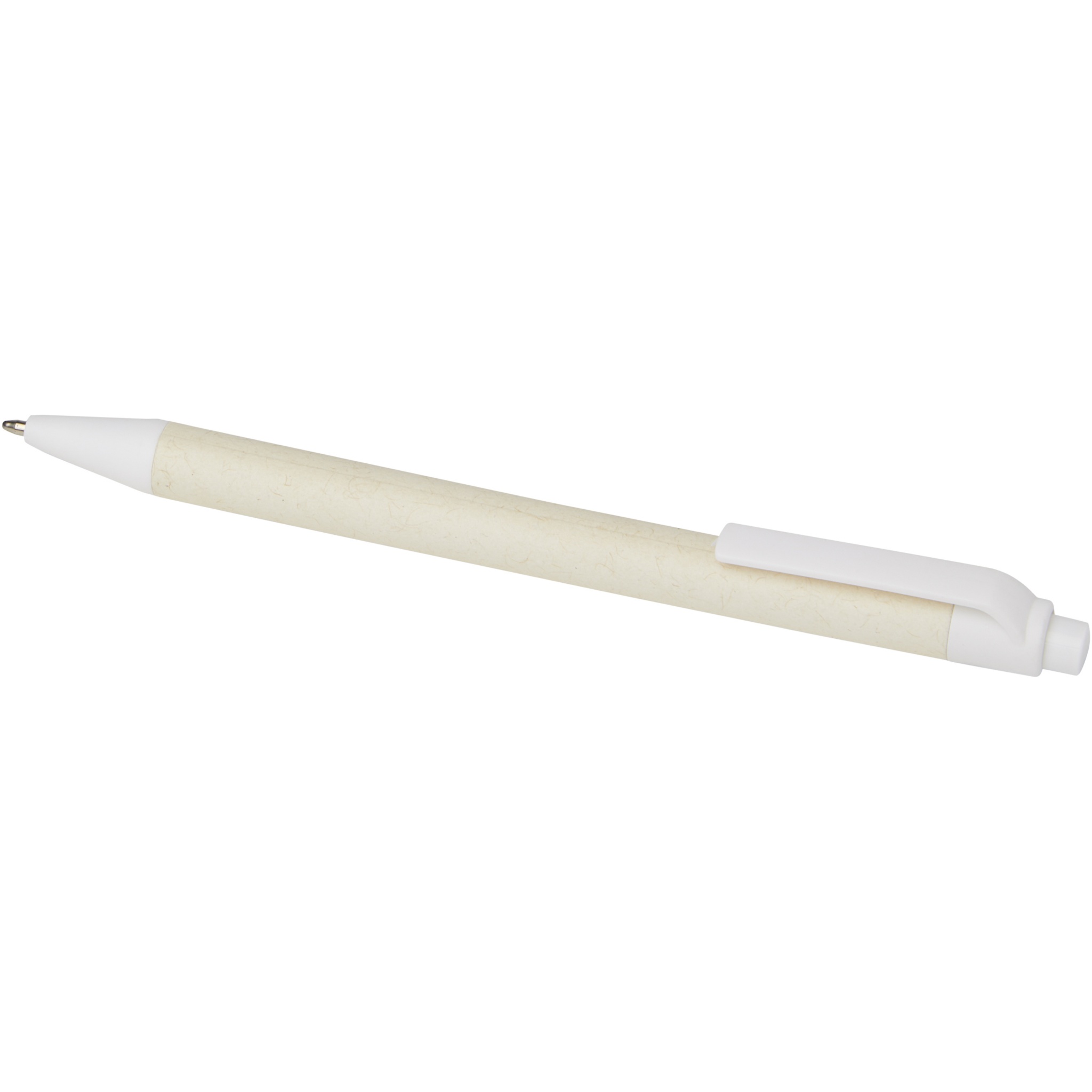 Click action ballpoint pen featuring a barrel made from recycled milk cartons (up to 70%). The button, clip, and tip are made of PLA plastic. Used milk cartons are collected, sorted, processed, and turned into paper, truly turning waste into something useful.