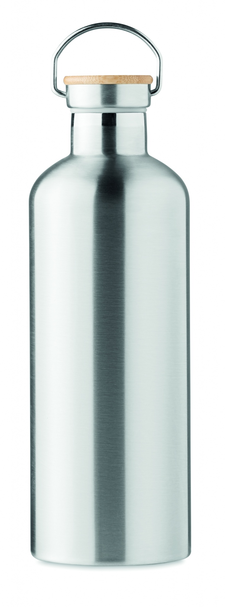 Double wall stainless steel insulating vacuum flask with lid in bamboo and carry handle. Capacity: 1500 ml. Leak free. Bamboo is a natural product, there may be slight variations in colour and size per item, which can affect the final decoration outcome.