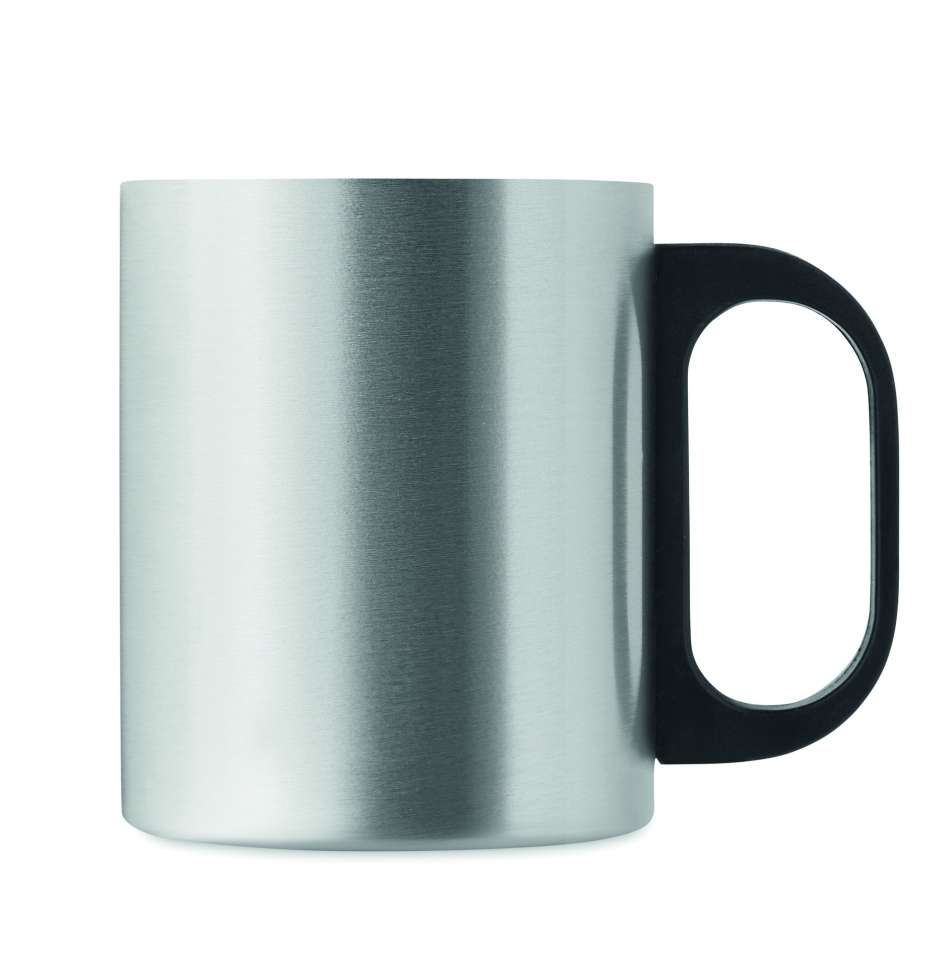 Double wall stainless steel mug with PP handle. Capacity: 300 ml.