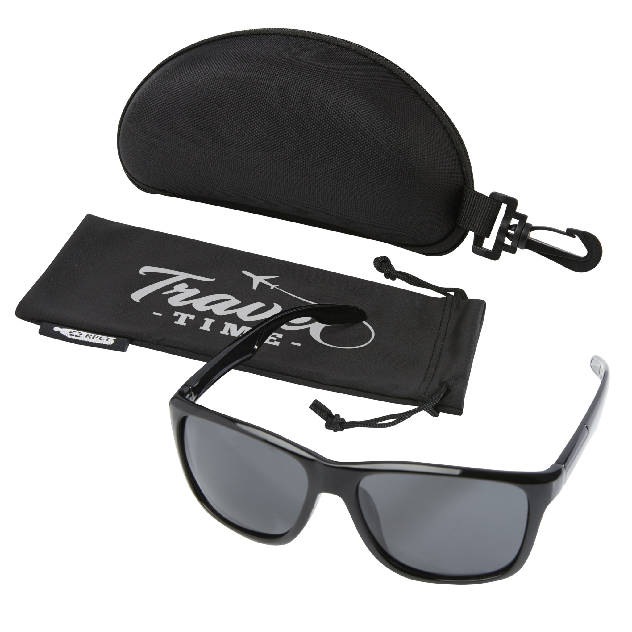 Polarized sunglasses made from plant based plastics. The high end finished frame and temples are made from Rilsan Clear G850 Rnew, a polymer derivative of castor oil. This material is a sustainable alternative to traditional plastics, and is also great for producing lightweight and flexible frames for comfortable eyewear. The lenses are polarized which eliminates reflecting sunlight, making it ideal for driving a car or during other sunny summer or winter outdoor activities. This eyewear conforms to EN ISO 12312-1, has UV400 lenses which are rated as Category 3. Delivered with a soft storage pouch (18 x 9 cm) made from recycled PET plastic, that also functions as a cleaning cloth, all packed in hard storage case (18 x 8 x 6.5 cm), also made from recycled PET plastic.