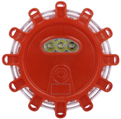 5 LED with various light settings: steady, light only on top, revolving, blinking and flashing, on/off switch, with part rubberized transparent housing, magnet and foldable hooks on the bottom. Excluding 3x AAA batteries.