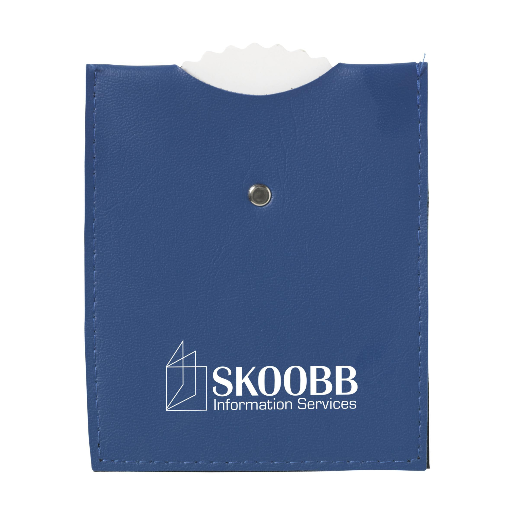 Parking disk made of blue imitation leather.