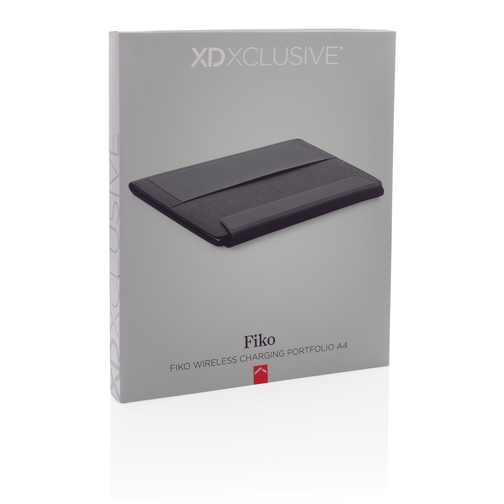 Fiko 5W wireless charging portfolio A4 with powerbank, black