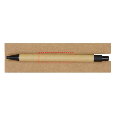 Sticky notepad with ballpoint pen. The notepad has 30 sheets of white 70 g/m2 lined paper (8 x 12 cm). It also has 25 multicoloured (5 x 1.2 cm) and 25 yellow (7.5 x 7.5 cm) sticky notes, both types with 70 g/m2 paper. The barrel of the ballpoint pen is made of recycled paper. Ink colour: Black. Writing length: 1000 metres. Nib size: 1.00 mm.