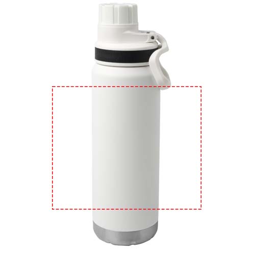 RCS certified stainless steel double-walled copper vacuum insulated water bottle with a screw-on, leak-proof lid. Featuring a wide opening for easy filling and cleaning, and a convenient carrying handle that is integrated with the cap. Suitable for carbonated drinks. Durable power coating on the outside. Delivered in a recycled cardboard gift box. Volume capacity: 700 ml.