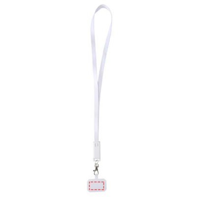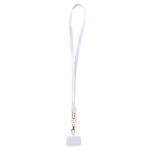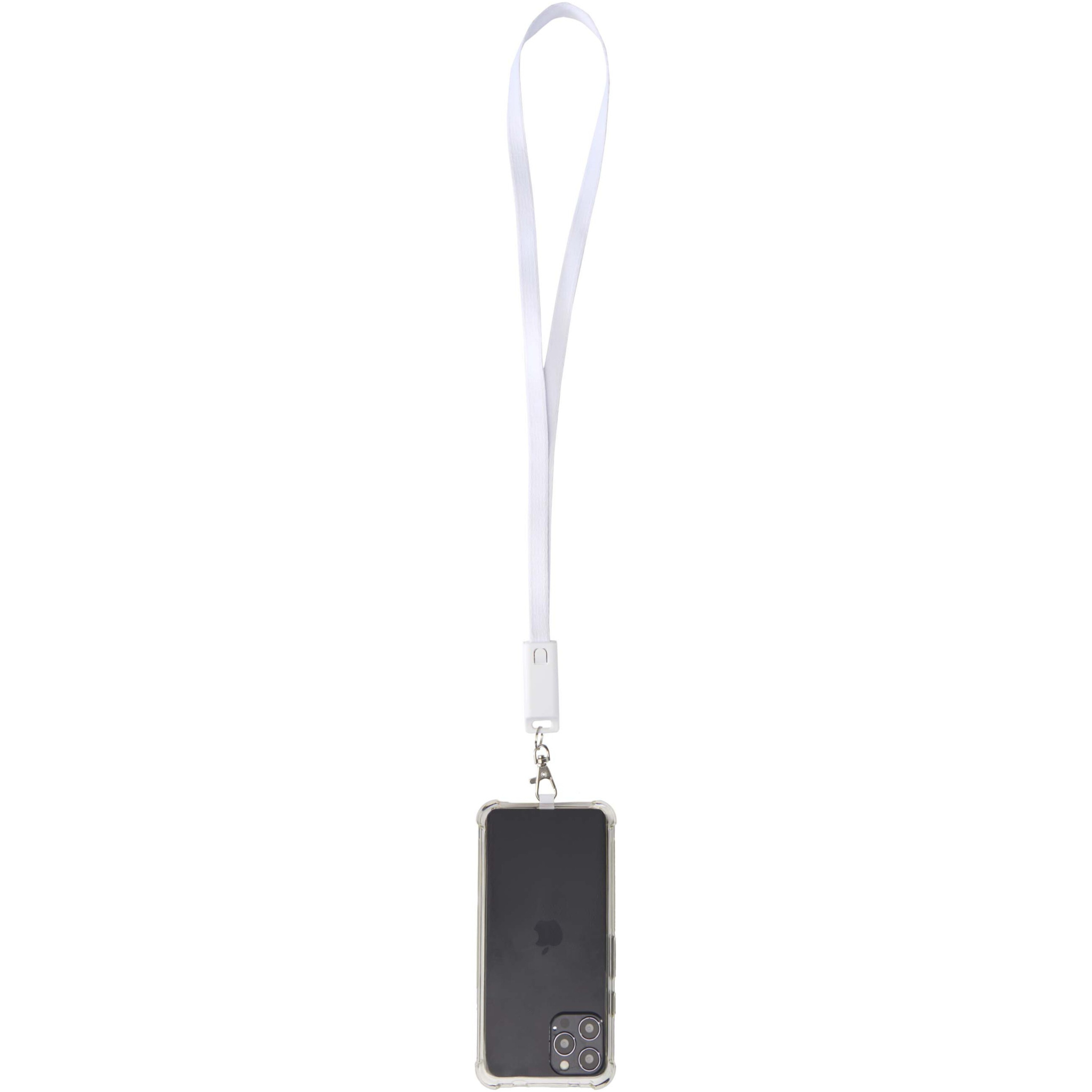 Franz recycled plastic smartphone lanyard with built-in data sync and 65W fast charge 5-in-1 cable, White