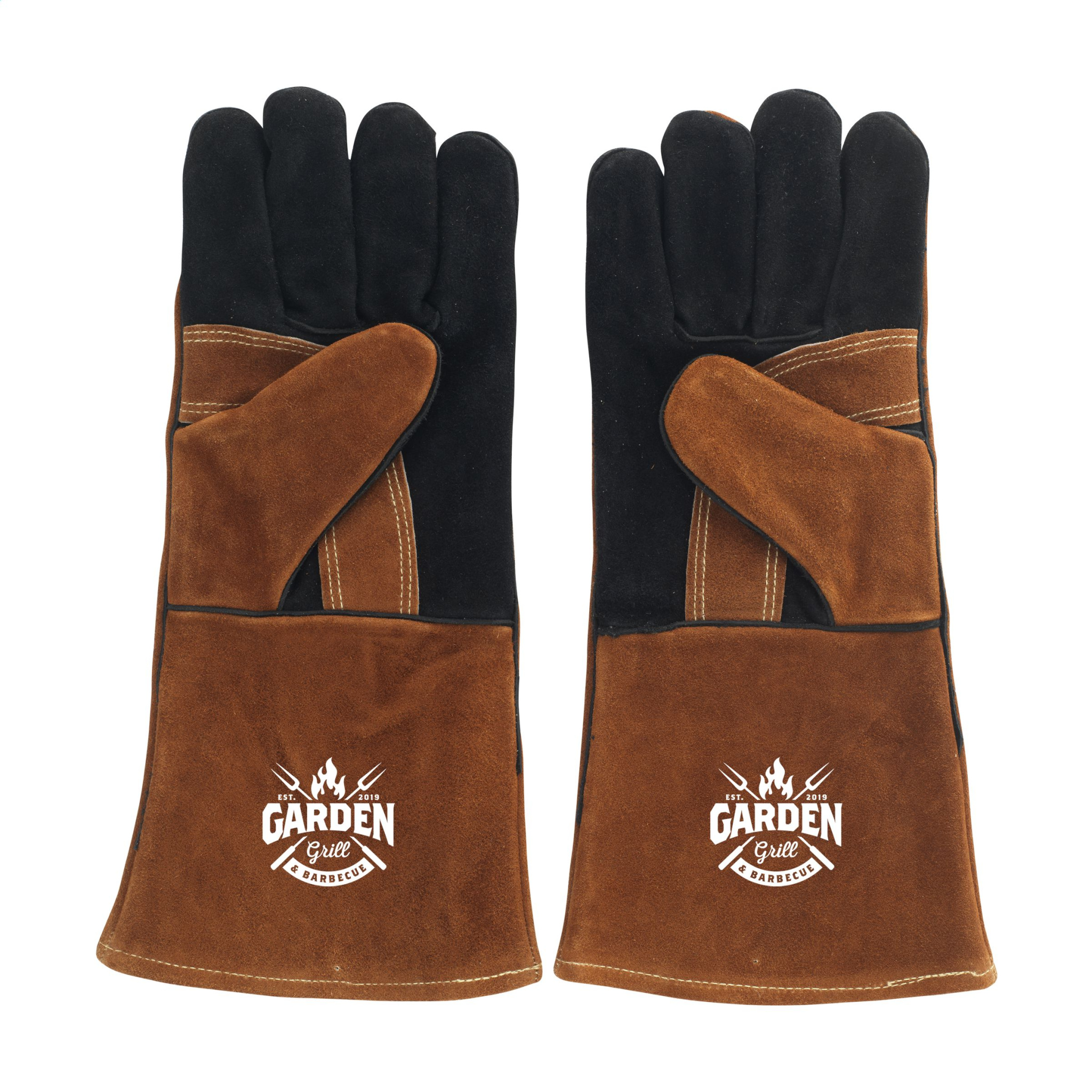 Set of two BBQ gloves from the Gusta brand. These gloves are made from wild leather material and have a beautiful suede look. They are designed to protect your hands from short periods of heat while barbecuing. The gloves need to be cooled down regularly after use.