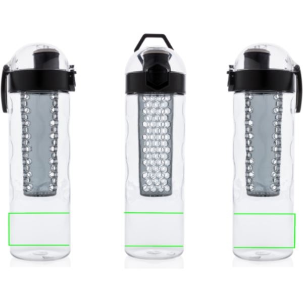Add some healthy fruit flavours to your water. This design bottle with honeycomb details offers convenient single-handed drinking. Push the button and the lid flips open. There’s a special locking mechanism to keep users from accidentally pressing the button. Including carrying handle. This infuser bottle is made of a durable and innovative tritan material . Odourless and 100% BPA-free. Content 700ml. Registered design®