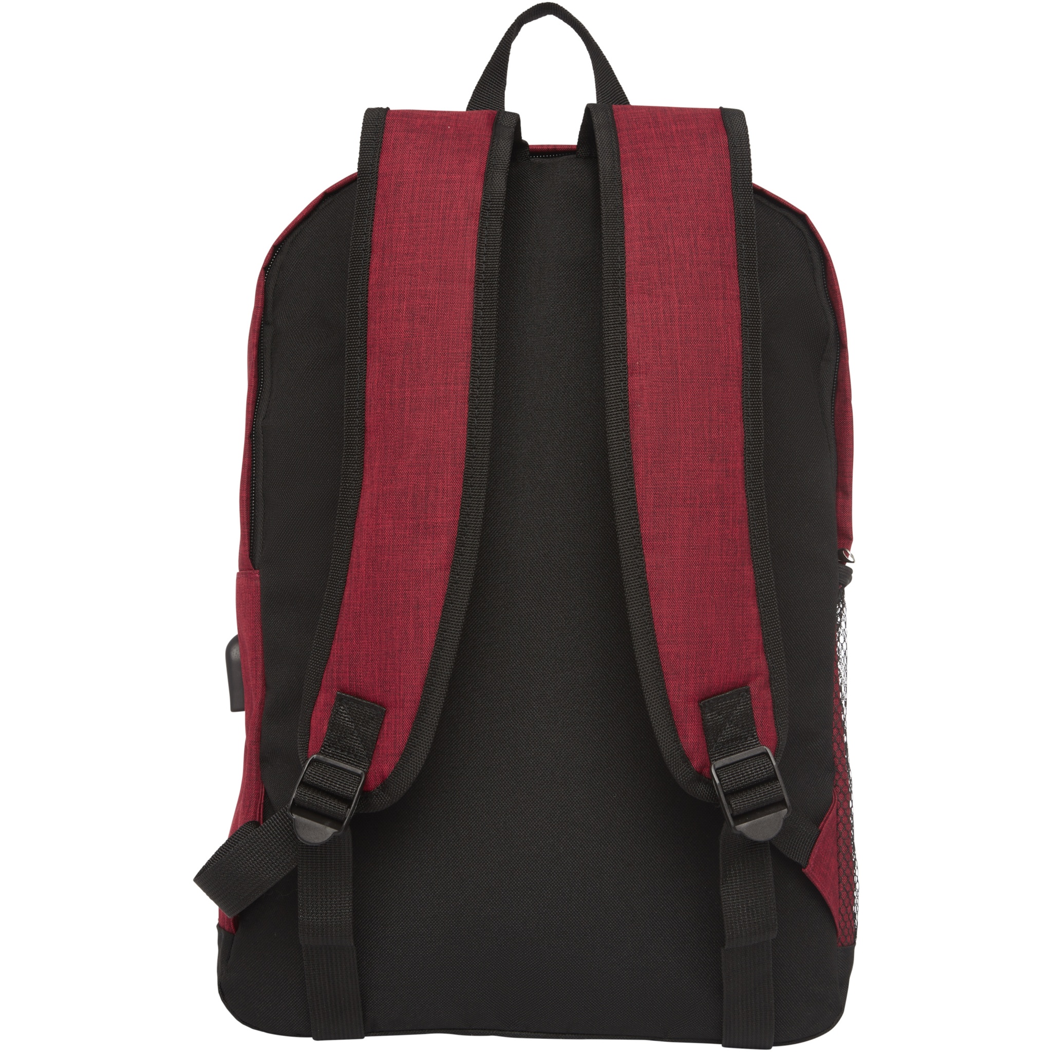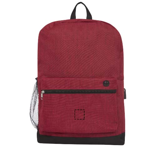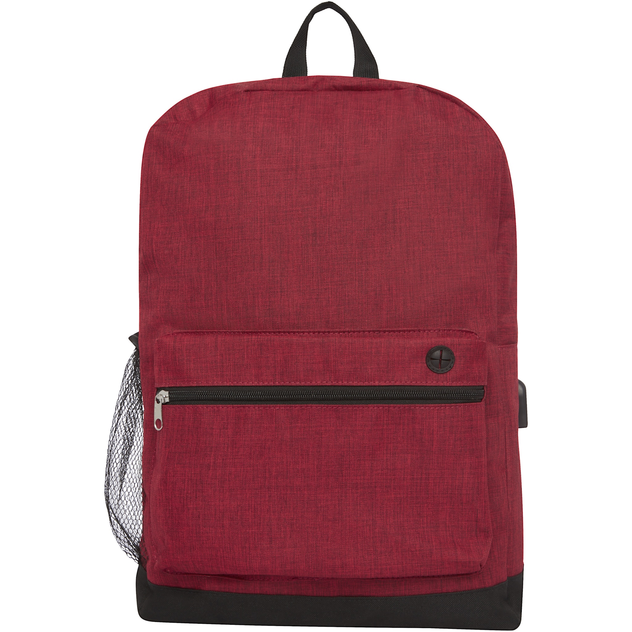 Laptop backpack designed with heathered colour effect in the front panel and black colour in the bottom part and back panel. Features a large zippered main compartment with a padded 15.6" laptop sleeve and a front zippered compartment for quick access to mobile devices. Comes with USB port including USB-A cable with 1 male and 1 female connector. Convenient padded shoulder straps, grab handle, and a mesh water bottle pocket. There may be minor variations in the colour of the actual product due to the nature of the fabric dyes, weaves, and printing.