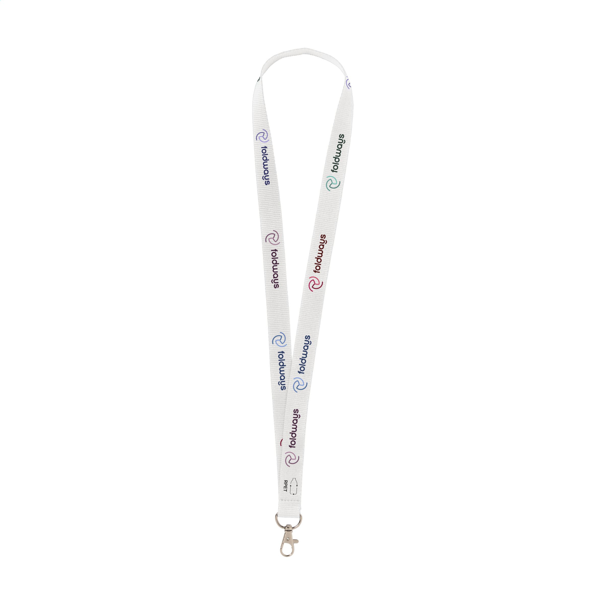 WoW! Strong woven RPET polyester lanyard (made from recycled PET bottles). Supplied with a metal carabiner. Including full-colour sublimation print. Made in Europe.