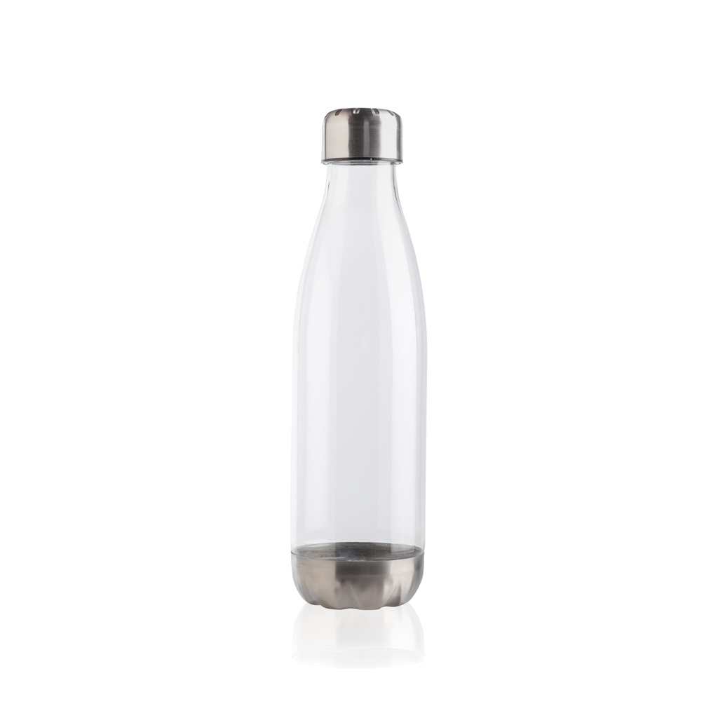 Elevate your daily water intake using this leakproof water bottle with stainless steel lid and bottom and transparent body. With a base that fits in most cup holders, this sleek looking water bottle will keep you hydrated on the go wherever you are. Capacity 500ml. BPA free.