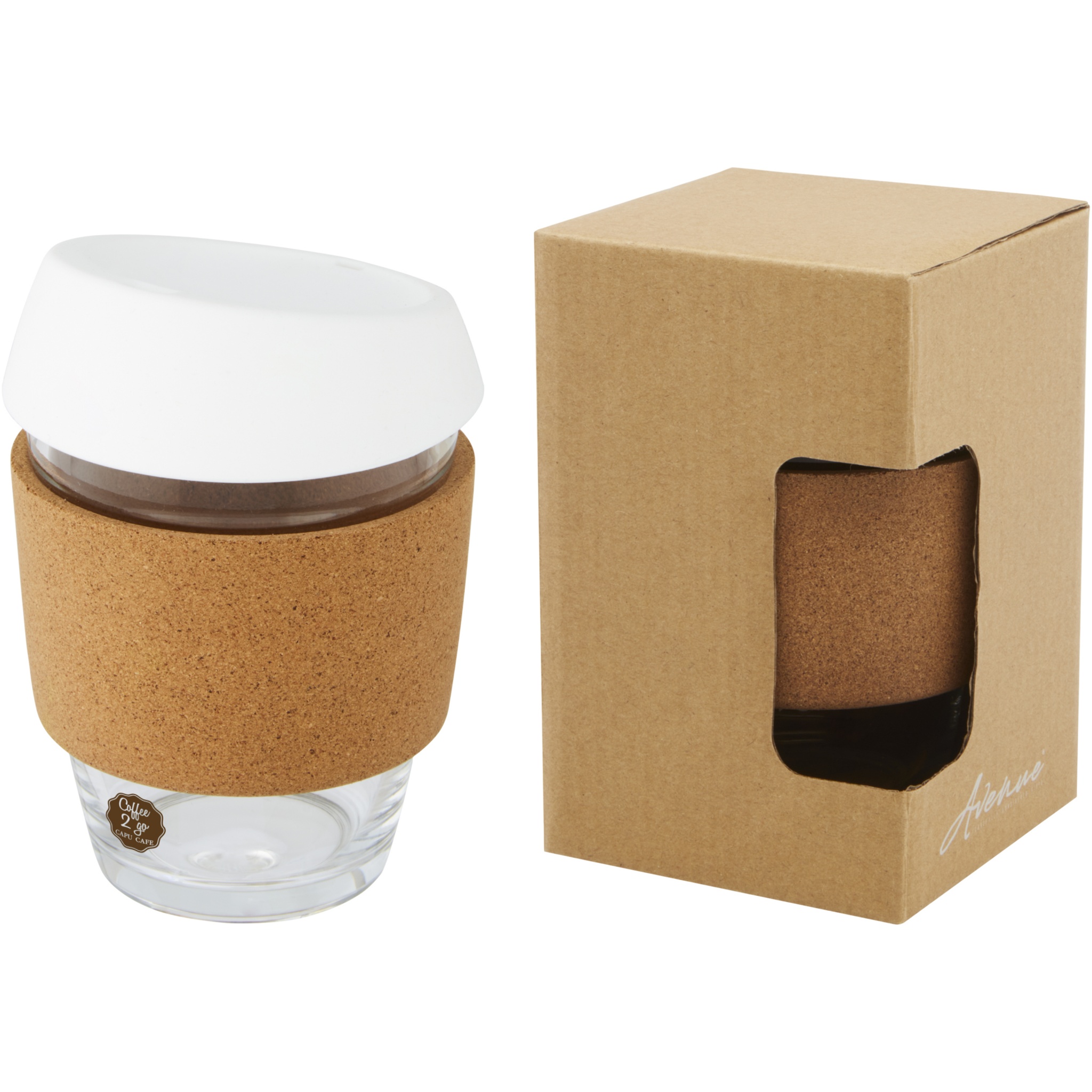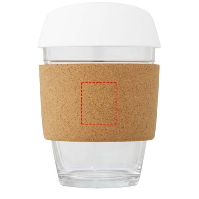 Single-walled borosilicate glass tumbler with a smooth cork grip. Features a removable food safe silicone lid. The thumbler is made from 100% durable borosilicate glass which conserves the freshness of the beverage, and it does not contain any harmful chemicals. Tested and approved under German Food Safe Legislation (LFGB), and tested for phthalates content according to REACH regulations. Fits under most coffee machines, making it the perfect tumbler for work on when on-the-go. Volume capacity is 360 ml. By removing the cork grip the tumbler is dishwasher safe. Presented in a recycled cardboard gift box.