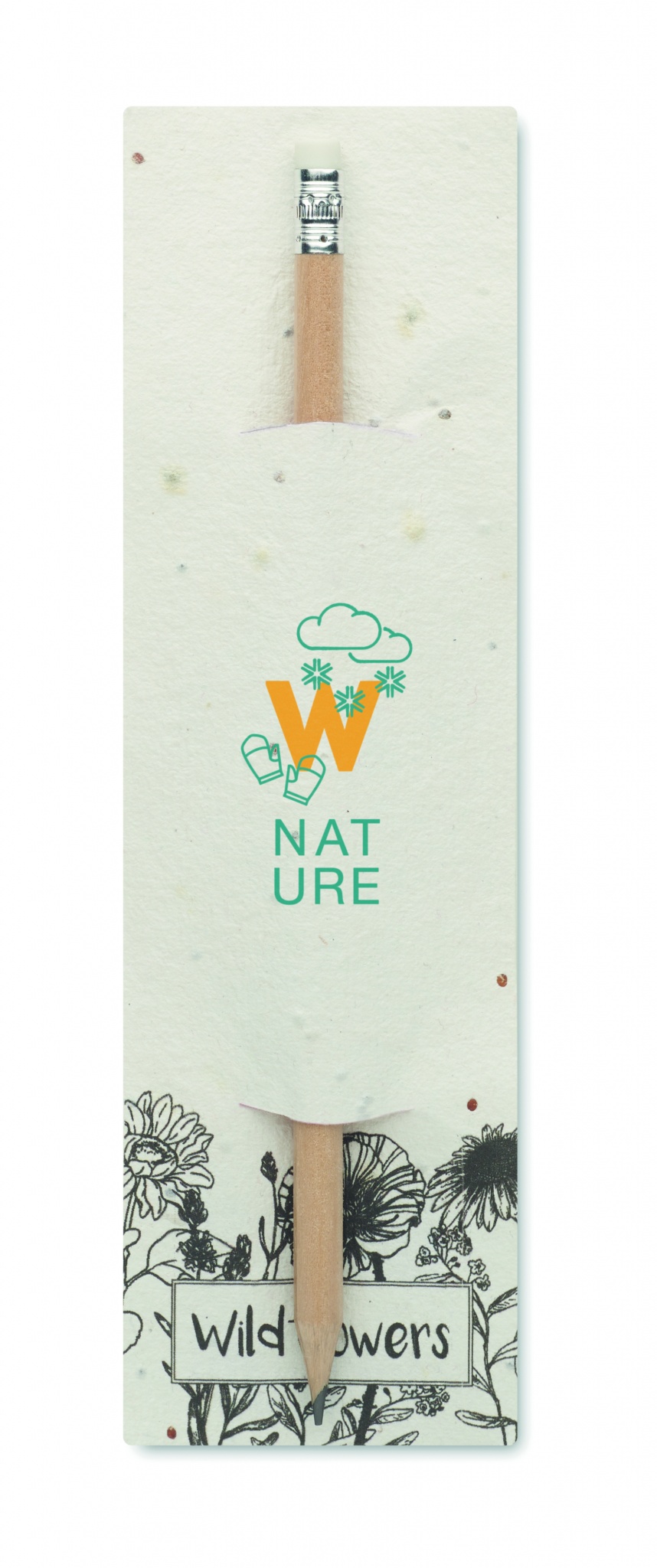 Natural wood pencil with eraser. Presented in seed paper ( wildflowers) pouch.