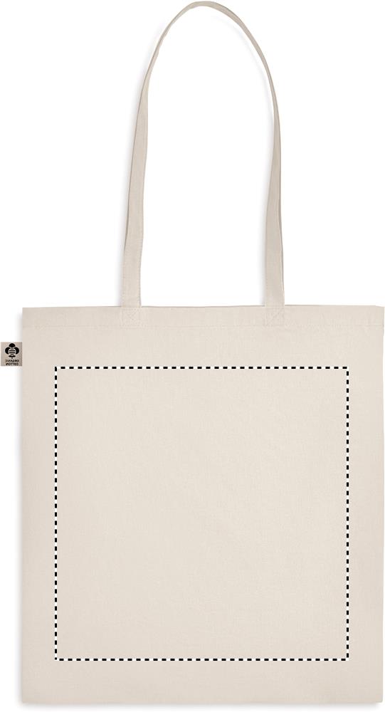 Organic cotton shopping bag with long handles. A classic tote bag design made to carry your daily groceries or other items. Carry the bag in your hands or over your shoulder with the long handles. Made from 100% natural organic cotton 140 gr/m².