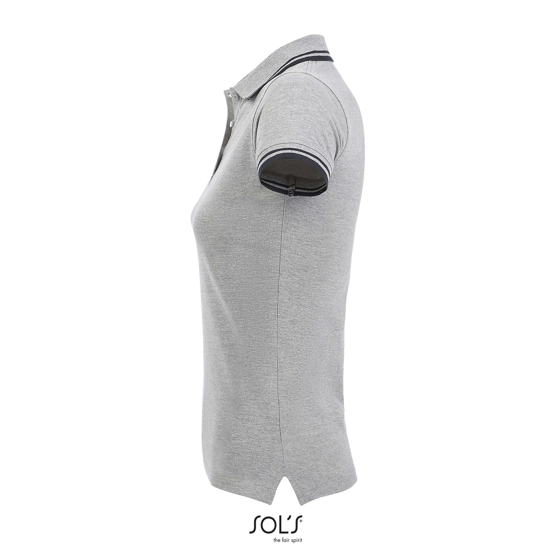 SOL'S PASADENA WOMEN, WOMEN'S POLO SHIRT, 100% Ringspun cotton PIQUÉ 200, Rib 1x1 collar and cuffs, Reinforcing tape on neck, Short sleeves, Contrasting stripes on collar and cuffs, Tone on tone 3 button placket, Fitted cut, Cut and sewn, Side slits, Spare button on the inside seam.About sizes matching, please refer to the size chart in the product documentation section.