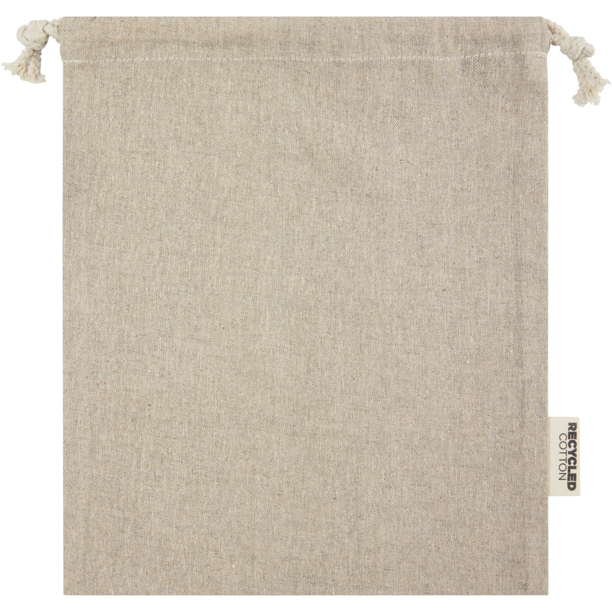Gift bag made of GRS certified recycled cotton with cotton drawstring closure. Ideal for gifting or storing items. Size: 25 x 30 cm. There may be minor variations in the colour of the actual product due to the nature of the production process.
