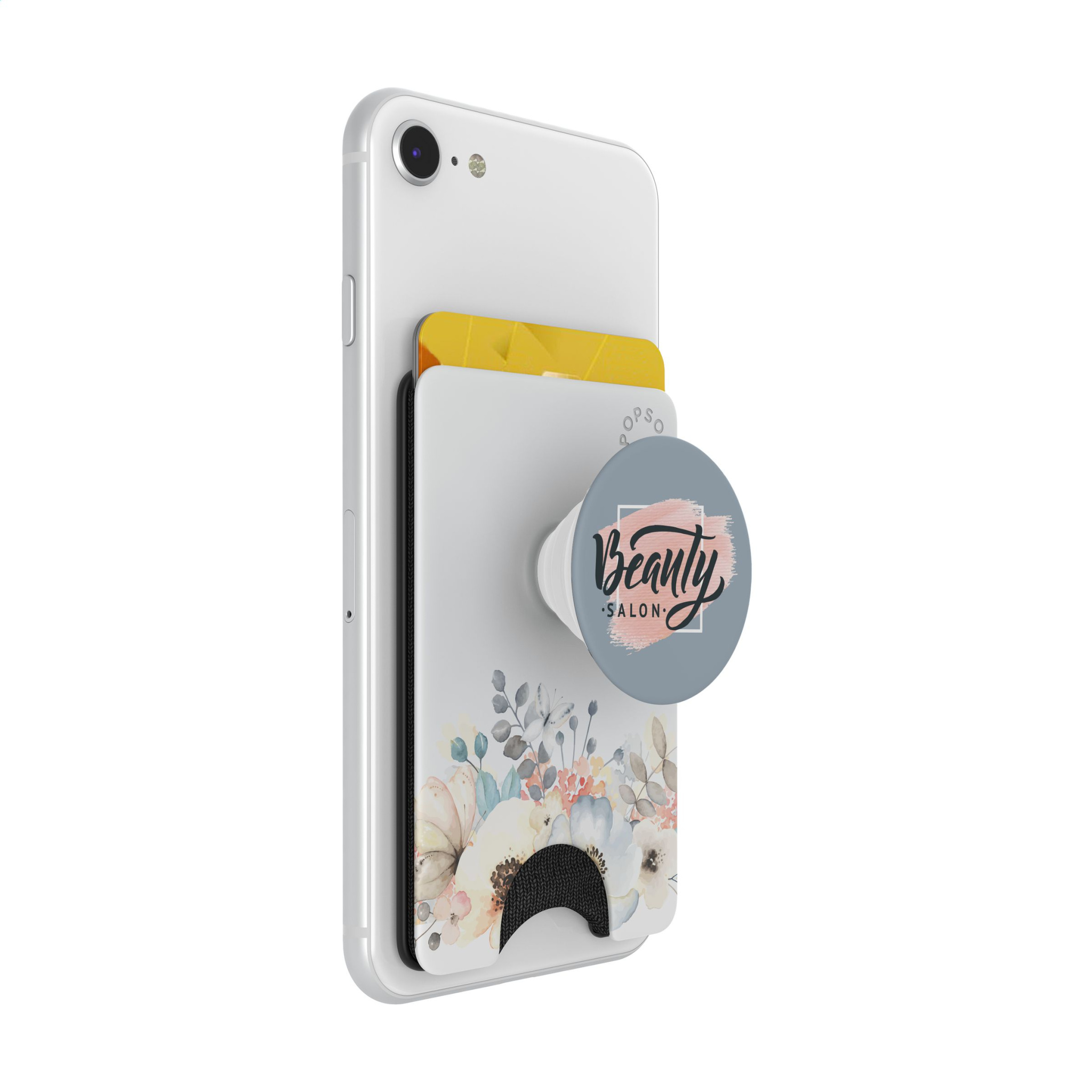 A combination of the PopWallet and the PopGrip with PopTop. The PopWallet is a plastic card holder that is suitable for 3 payment cards or approx. 6 business cards. Attach this phone accessory with bank card to the back of your phone and you will always have a means of payment on hand Easy to attach and move Sticks on most smooth, hard devices and cases Not suitable for silicone, highly textured and soft cases The card holder, including PopGrip and PopTop, can be removed from your phone in one operation, so that wireless charging of your phone is possible.The PopGrip ensures a secure grip when operating your phone with one hand. Read the instructions for optimal use . Extra info regarding delivery time: up to 500 pieces: 2 weeks, 500 - 2,500 pieces: 3 weeks. For larger quantities, price and delivery time on request. The PopWallet+ is only supplied with an imprint.