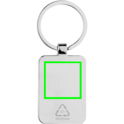 RCS recycled zinc alloy rectangle keychain with bamboo, silver